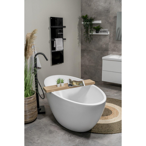 Le design fin de 115 x 46,5 x 5 cm et le verre noir brillant confèrent à votre salle de bains une apparence luxueuse et minimaliste. Comme le panneau est monté verticalement contre le mur, il occupe peu d’espace et laisse le sol libre, ce qui agrandit visuellement la pièce et facilite le nettoyage. La surface vitrée lisse se nettoie facilement avec un chiffon doux, de sorte que poussière et éclaboussures d’eau disparaissent rapidement. La finition moderne et brillante se marie à merveille avec des mitigeurs noirs, des carreaux sombres ou, au contraire, comme contraste élégant sur un mur clair. Vous ajoutez ainsi non seulement de la chaleur, mais aussi un élément de design au lignes épurées à votre salle de bains.
