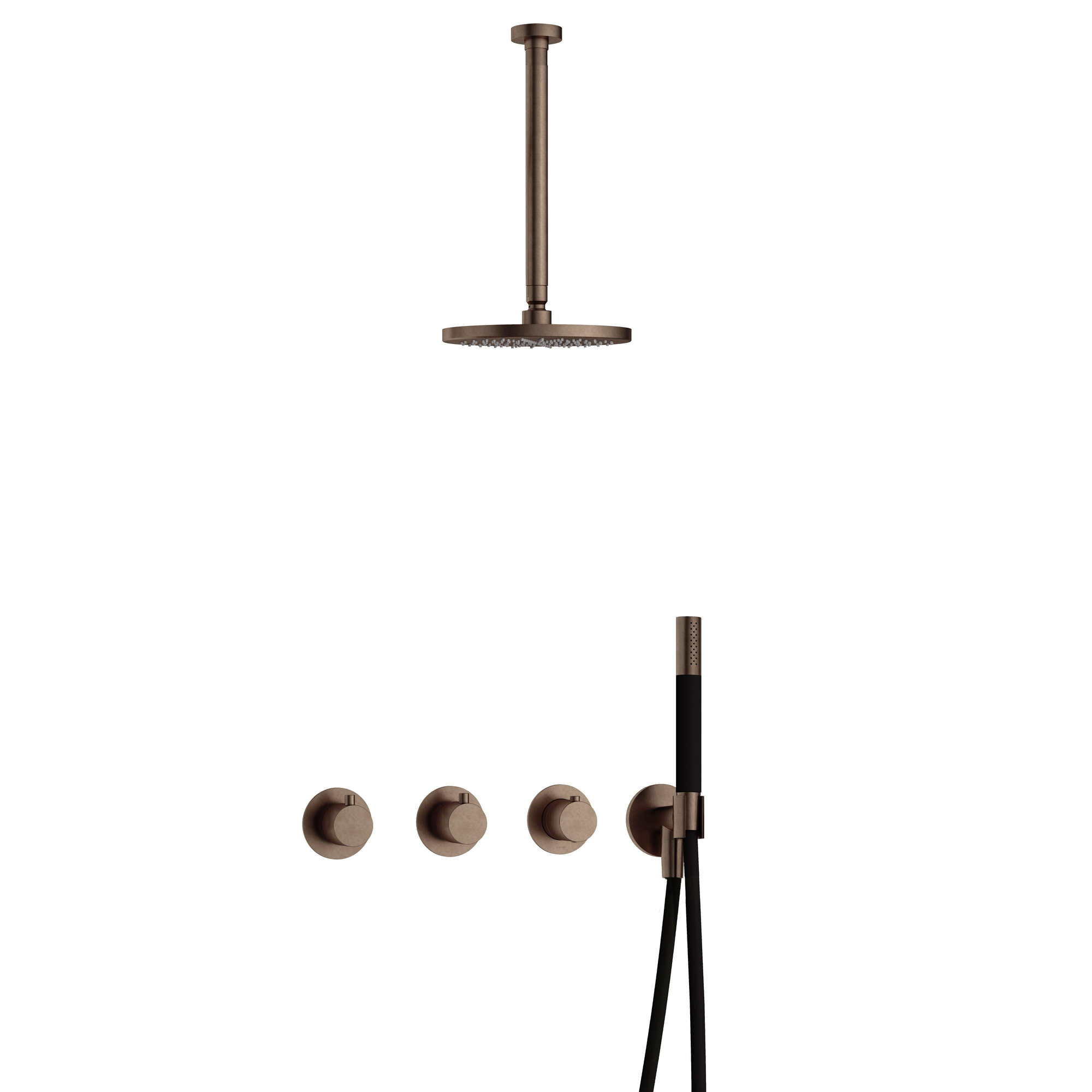 Hotbath Cobber IBS70 Ensemble de douche de tête encastré - bras de plafond 30 cm - douche de tête ronde 20 cm - douchette barre - laiton vieilli
