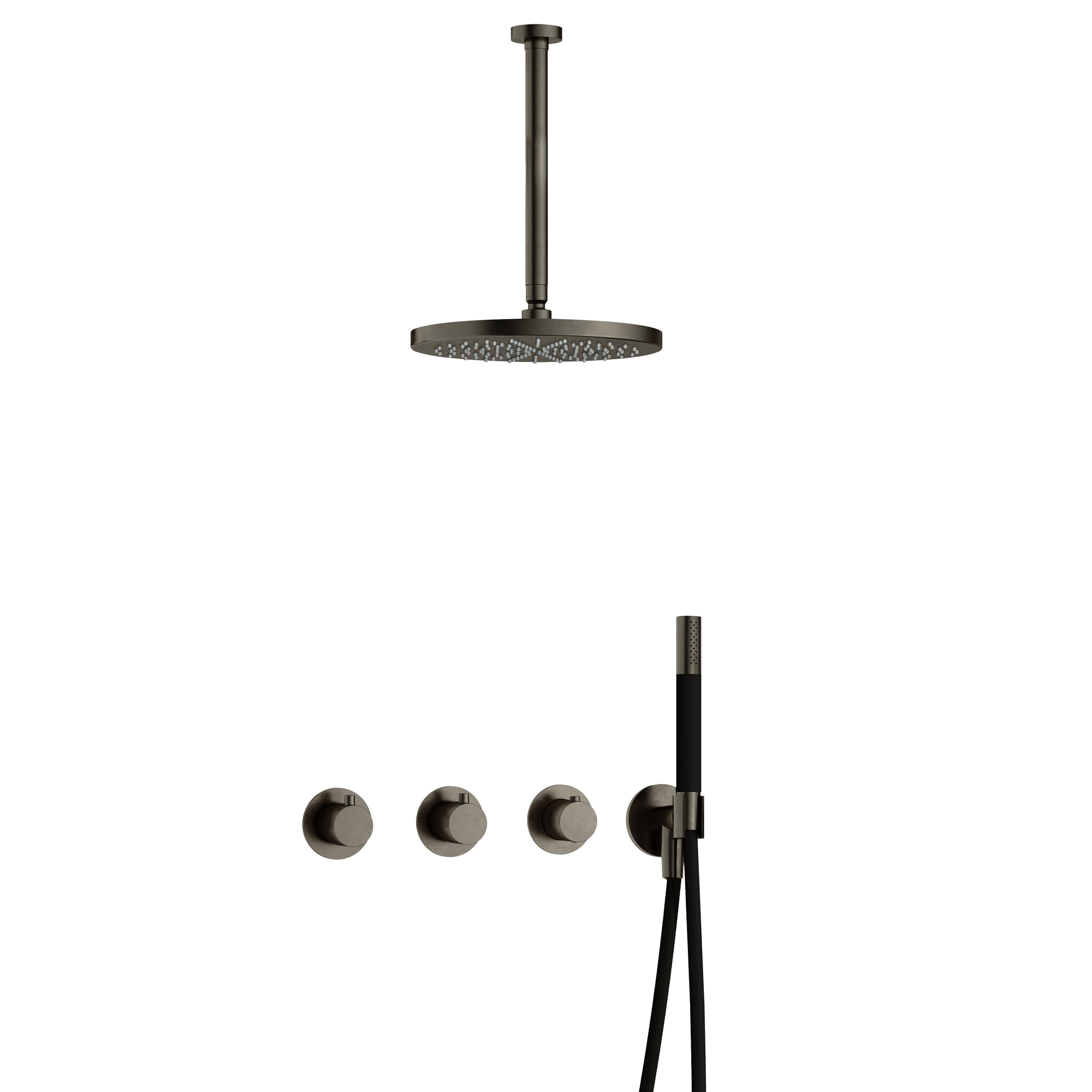 Hotbath Cobber IBS70 Ensemble de douche de tête encastré - bras de plafond 30 cm - douche de tête ronde 30 cm - douchette stick - fer vieilli