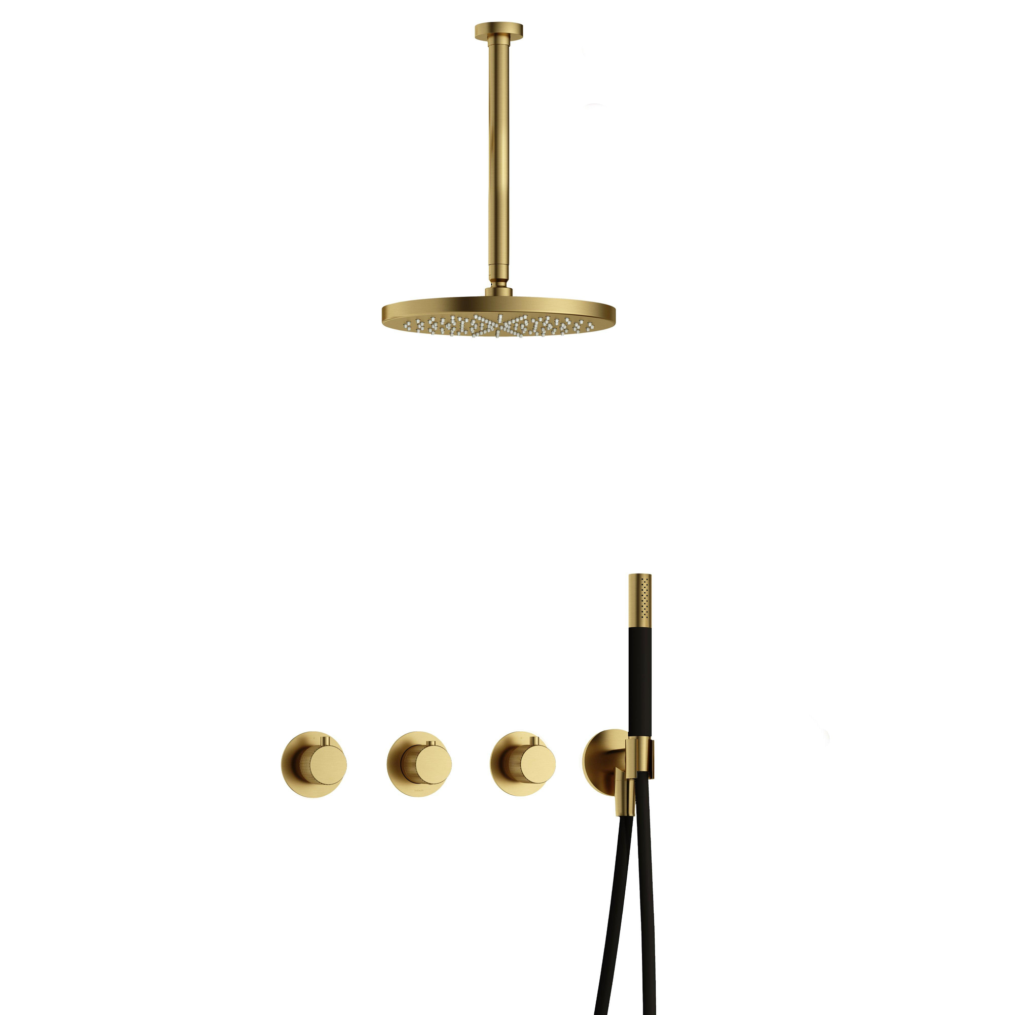 Hotbath Cobber X IBSX70 Ensemble de douche de tête encastré - douche de tête 30cm - bras de plafond 30cm - douchette barre 1 jet - laiton brossé - PVD