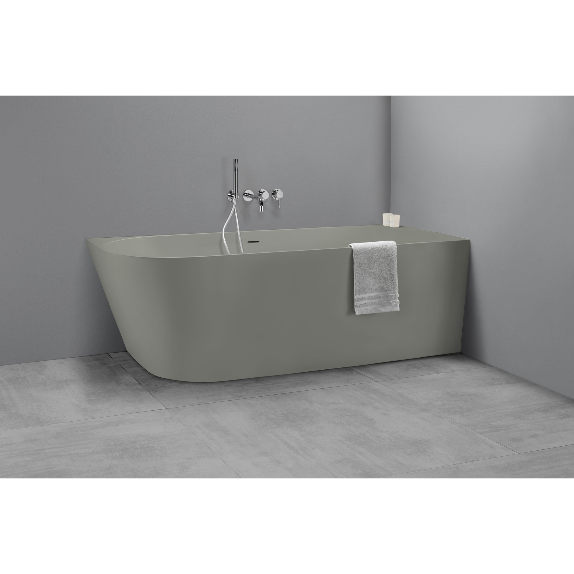 Vous cherchez une expérience de bain luxueuse, mais vous n’avez pas l’espace ou le besoin d’une baignoire totalement autoportante ? Dans ce cas, un modèle demi autoportant est un choix astucieux et élégant. Grâce à son installation contre un seul mur, vous créez un effet spacieux et moderne tout en utilisant efficacement l’espace disponible. Ce type de baignoire s’intègre parfaitement dans des salles de bains de taille moyenne à grande, mais aussi dans des espaces plus petits intelligemment agencés où vous souhaitez une apparence luxueuse sans faire de concessions sur le confort. L’aspect mat, type béton, donne immédiatement à votre salle de bains un look spa contemporain, faisant de la baignoire non seulement un élément fonctionnel, mais aussi un véritable accroche-regard. Idéal si vous aimez un design épuré avec un luxe subtil et que vous souhaitez pouvoir vous détendre de tout votre long après une journée bien remplie.