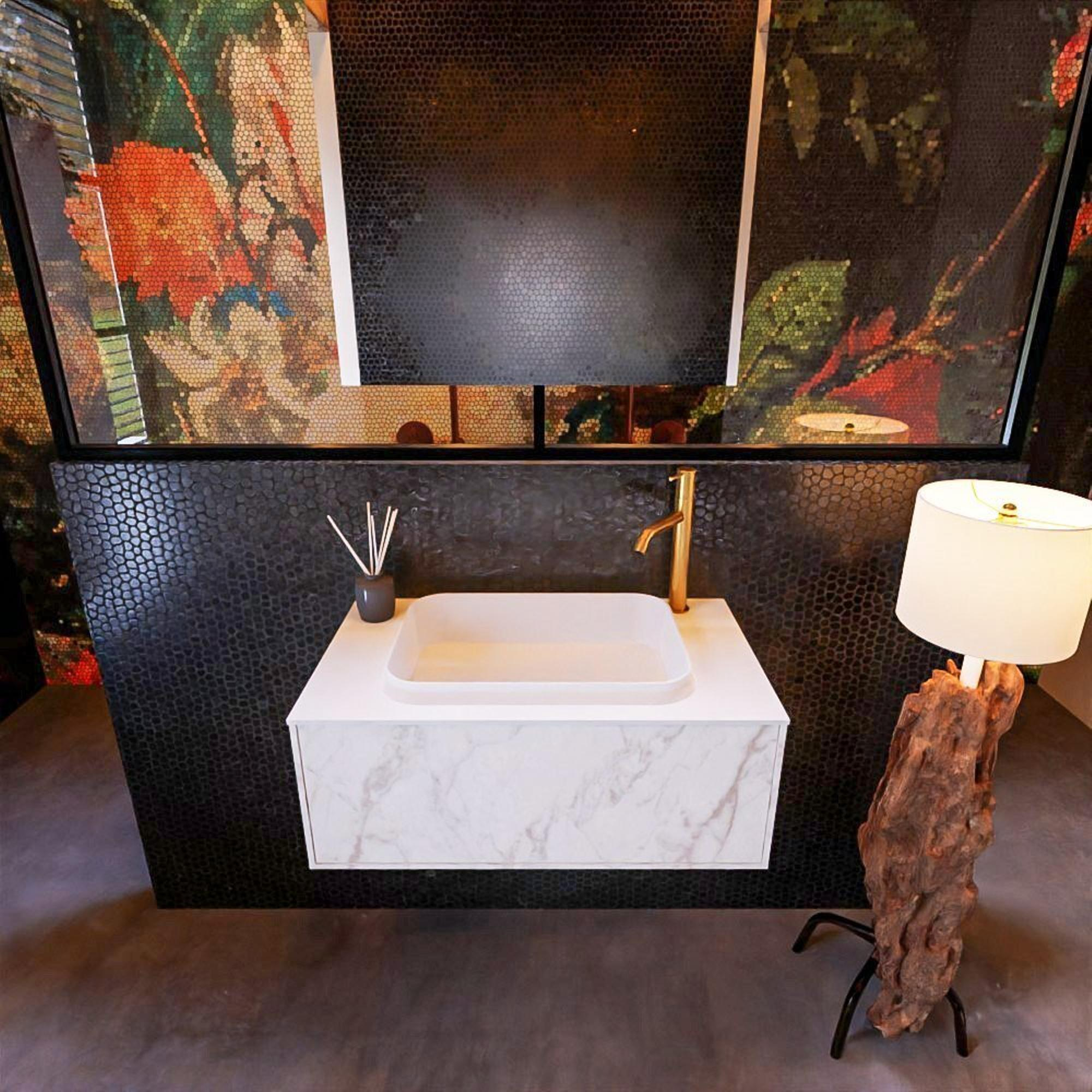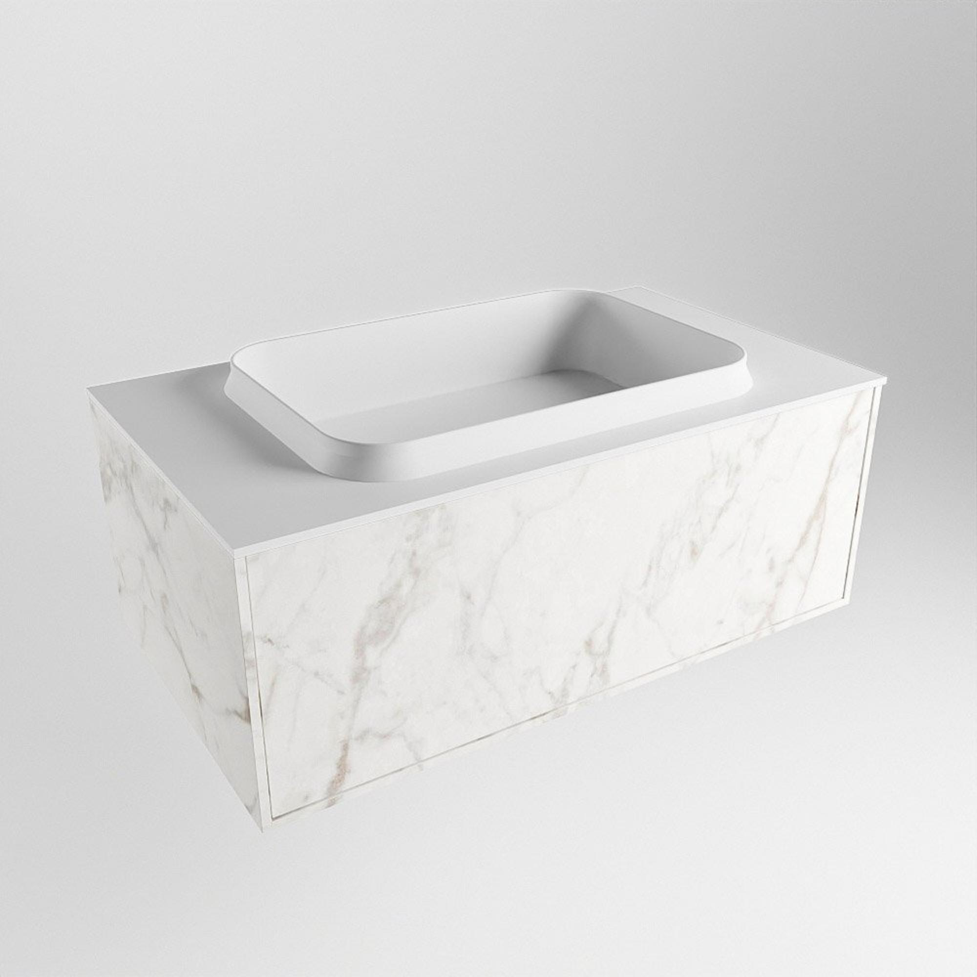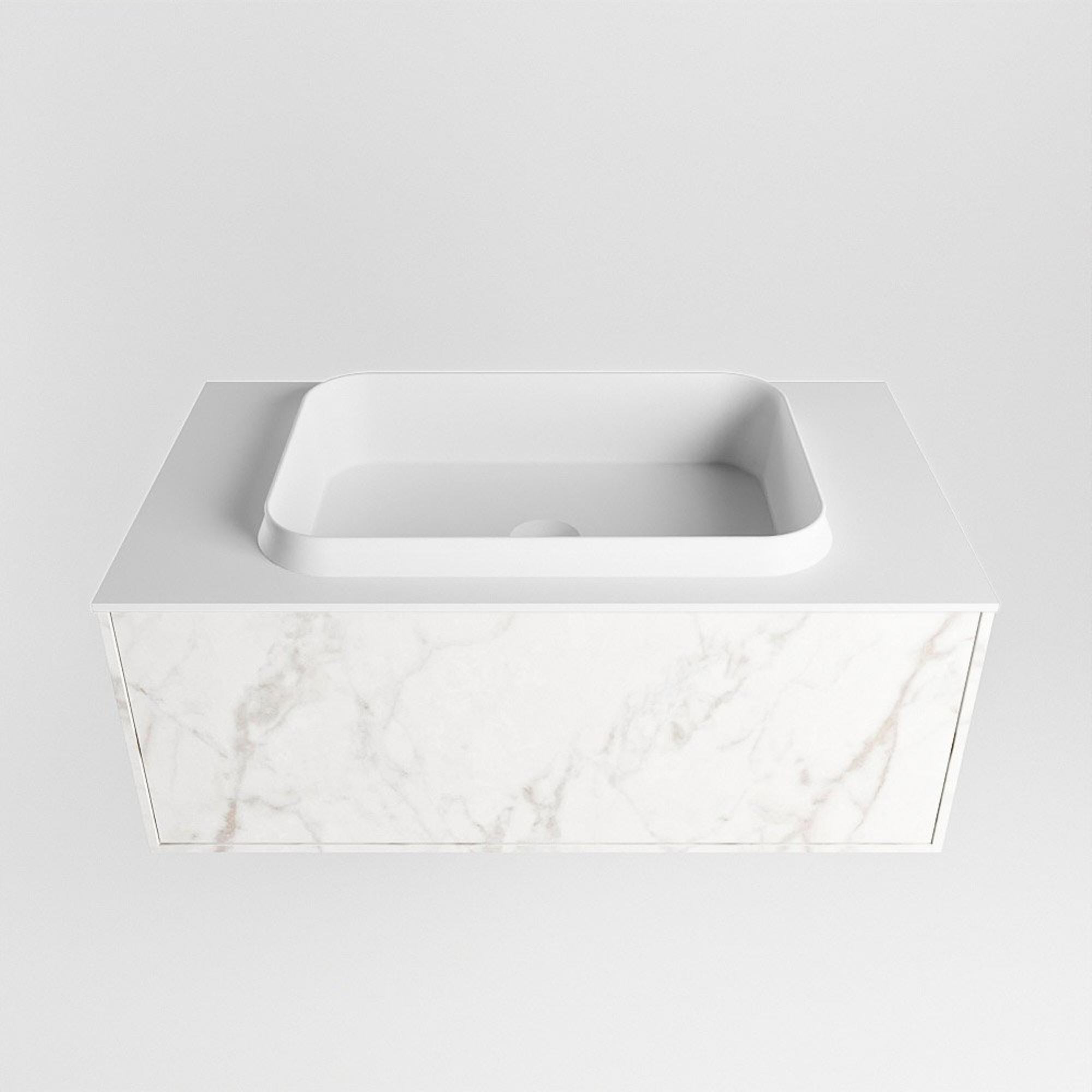 MONDIAZ ERIN Ensemble de meuble - 80cm - carrara - 1 tiroir - lavabo au centre - 1 trou de robinet - Talc