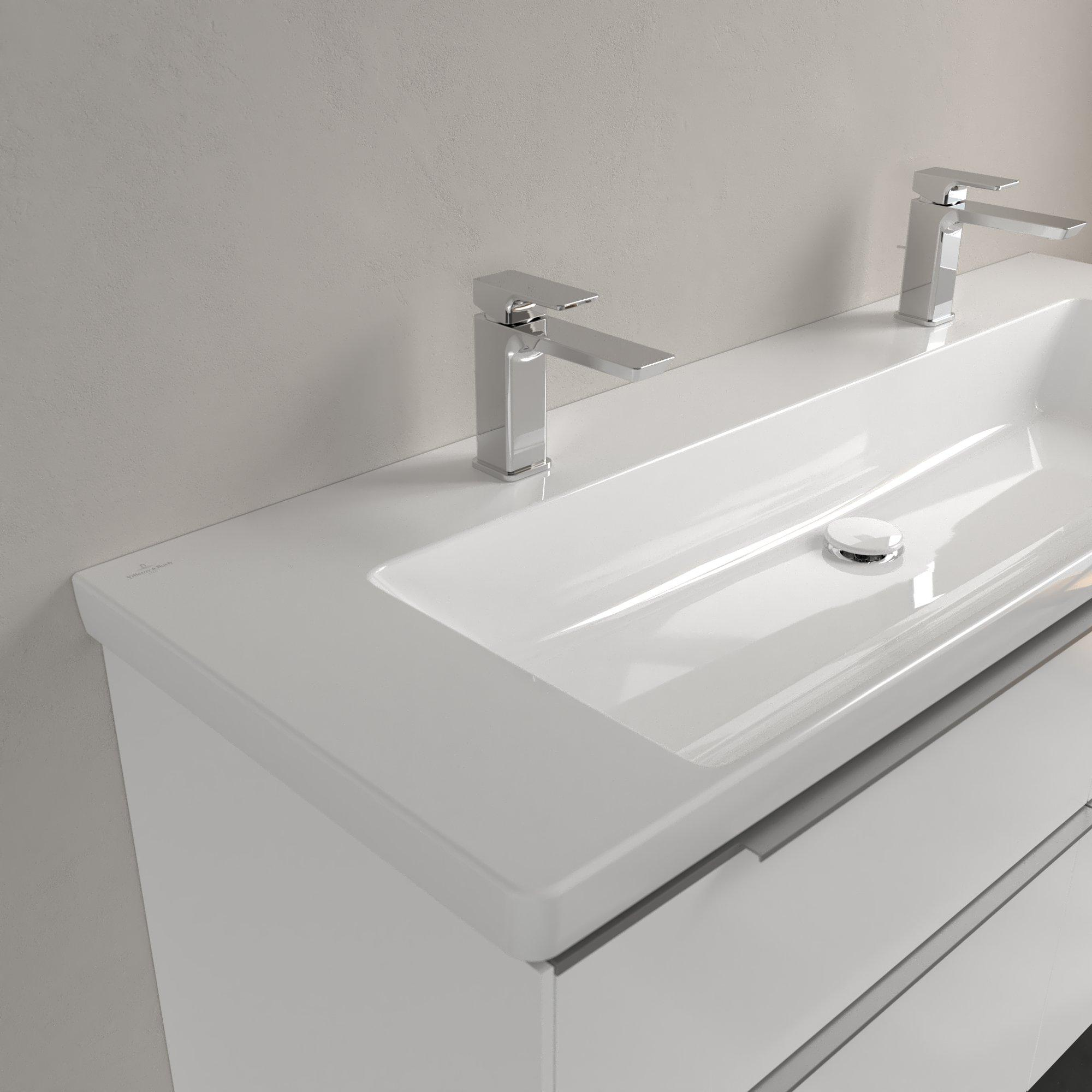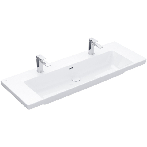 Villeroy & Boch Subway 3.0 lavabo pour meuble - 130x47x17cm - Rectangulaire 2 trous de robinet sans trop-plein Blanc Alpin brillant Céramique