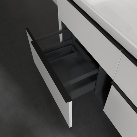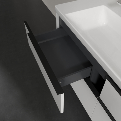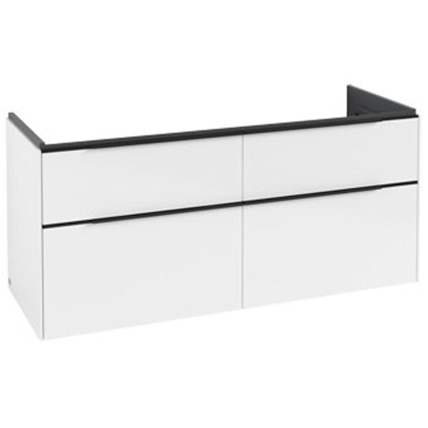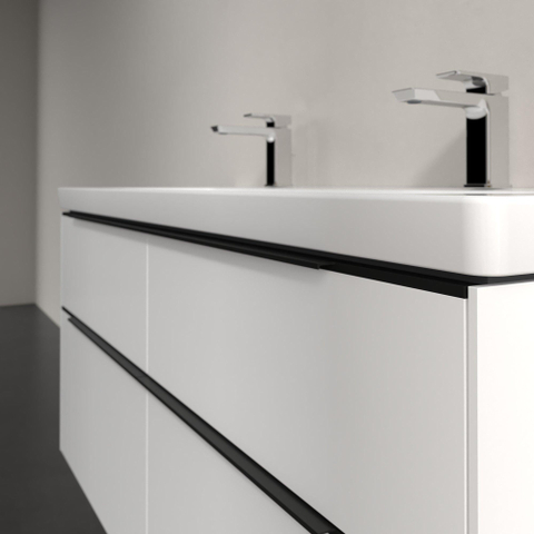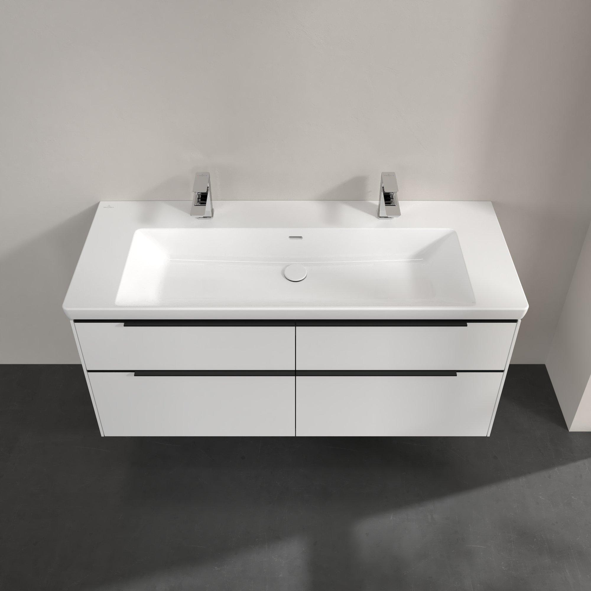 Villeroy & Boch Subway 3.0 meuble sous-lavabo - 130x55x45cm - avec poignée Volcano Black 1 découpe pour siphon panneau de particules Brilliant White