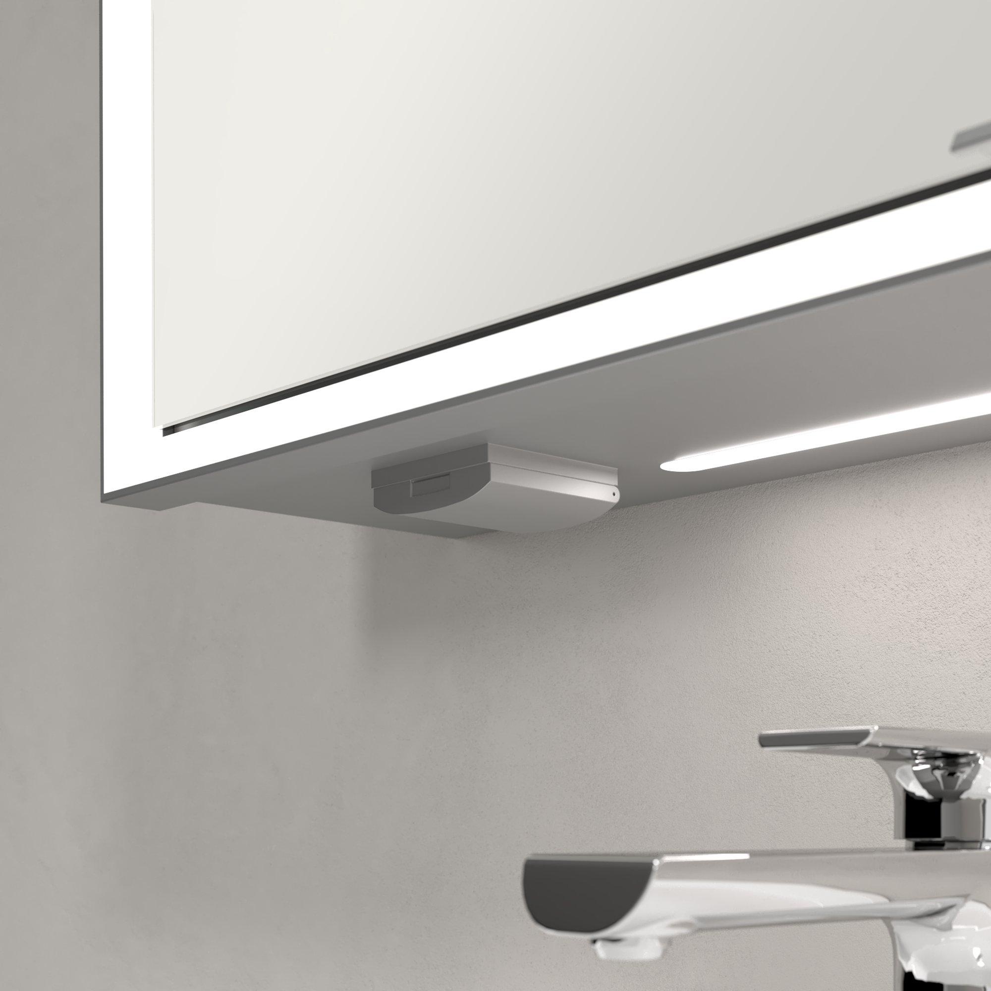 Le bandeau lumineux LED périphérique assure un éclairage uniforme de votre visage, sans ombres gênantes. C’est idéal si vous souhaitez travailler avec précision, par exemple pour l’épilation, l’application du maquillage ou la taille de votre barbe. L’éclairage de lavabo intégré rayonne en outre vers le bas, de sorte que le plan de lavabo soit également agréablement éclairé. Grâce à l’interrupteur à capteur, vous commandez facilement l’éclairage sans contact, ce qui est hygiénique et confortable lorsque vous avez les mains mouillées ou savonneuses. Grâce à la fonction de variation continue et à la température de couleur réglable, du blanc lumière du jour froide au blanc chaud, vous adaptez exactement la lumière au moment de la journée : claire et fraîche le matin, plus douce et plus chaleureuse le soir. Vous créez ainsi sans effort l’ambiance lumineuse adaptée à chaque situation.