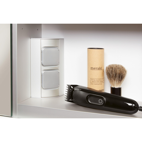 Derrière les trois portes miroir à double face, vous disposez d’un vaste espace de rangement pour tous vos produits de soins quotidiens. Les étagères en aluminium réglables en hauteur peuvent être facilement adaptées à la hauteur des flacons, sprays et produits de soin, afin que tout reste rangé de manière nette et logique. Les bords relevés des étagères empêchent les petits objets de tomber ou de glisser de l’étagère, ce qui est particulièrement pratique dans une famille nombreuse ou dans une petite salle de bains. Les prises de courant intégrées à l’intérieur sont particulièrement astucieuses, idéales pour recharger une brosse à dents électrique ou utiliser un rasoir. Le miroir grossissant, la barre magnétique et la tablette vous aident à garder à portée de main et bien organisés les petits accessoires tels que pinces à épiler, ciseaux à ongles ou barrettes. Résultat : une zone de lavabo calme et ordonnée dans laquelle vous trouvez plus rapidement ce dont vous avez besoin.