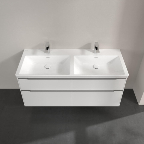 Villeroy & Boch Subway 3.0 meuble sous-lavabo - 130x55x45cm - avec poignée brillante en aluminium 2 découpes pour siphon à gauche et à droite panneau de particules Pure White