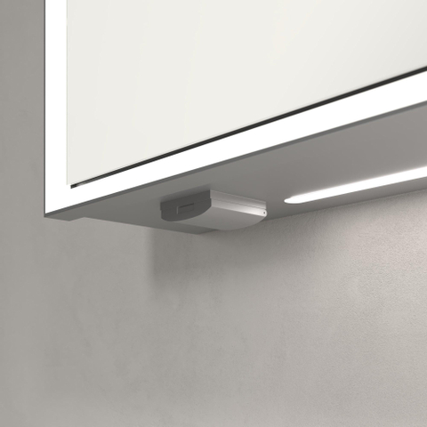 Une salle de bains bien éclairée commence par le miroir. Le bandeau lumineux LED périphérique assure un éclairage homogène de votre visage, de sorte que les ombres sont réduites au minimum et que vous vous voyez toujours de manière nette et naturelle. Grâce à l’interrupteur à capteur, vous commandez l’éclairage facilement sans toucher l’armoire, ce qui n’est pas seulement hygiénique, mais permet également de garder la surface du miroir bien propre. L’intensité lumineuse est réglable en continu, afin que vous puissiez adapter la lumière au moment de la journée : fraîche et puissante le matin, plus douce et plus chaleureuse le soir. De plus, vous pouvez régler la température de couleur de la lumière de blanc lumière du jour à blanc chaud, afin de par exemple vérifier votre maquillage en mode lumière du jour puis de passer à une atmosphère lumineuse plus chaude et relaxante.