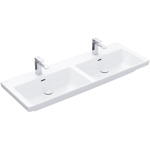 Villeroy & Boch Subway 3.0 Double vasque à poser sur meuble - 1300 x 475 x 165 stone white mat (blanc) CeramicPlus - sans trop-plein