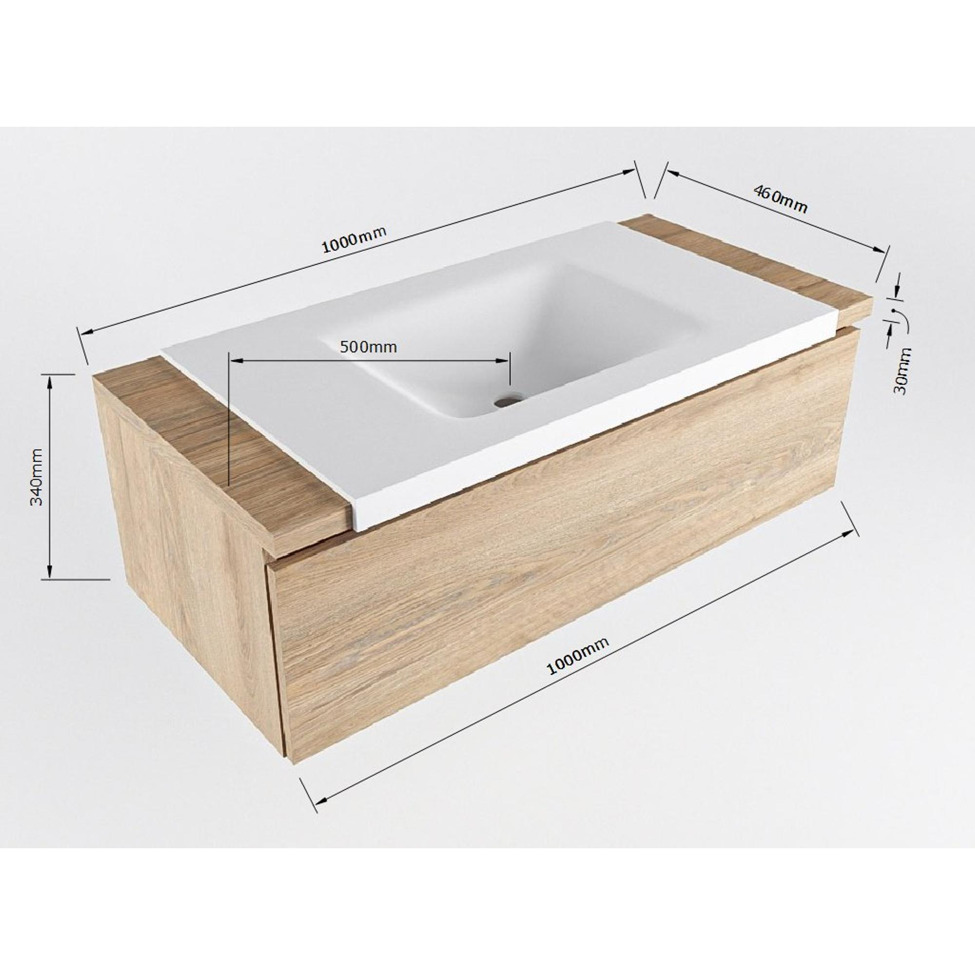 Mondiaz BUKLA Ensemble de meuble - 100x45x34cm - 1 trou de robinet - lavabo centré - solid surface - Talc - sans poignée - 1 tiroir - Mélamine - Chêne blanchi