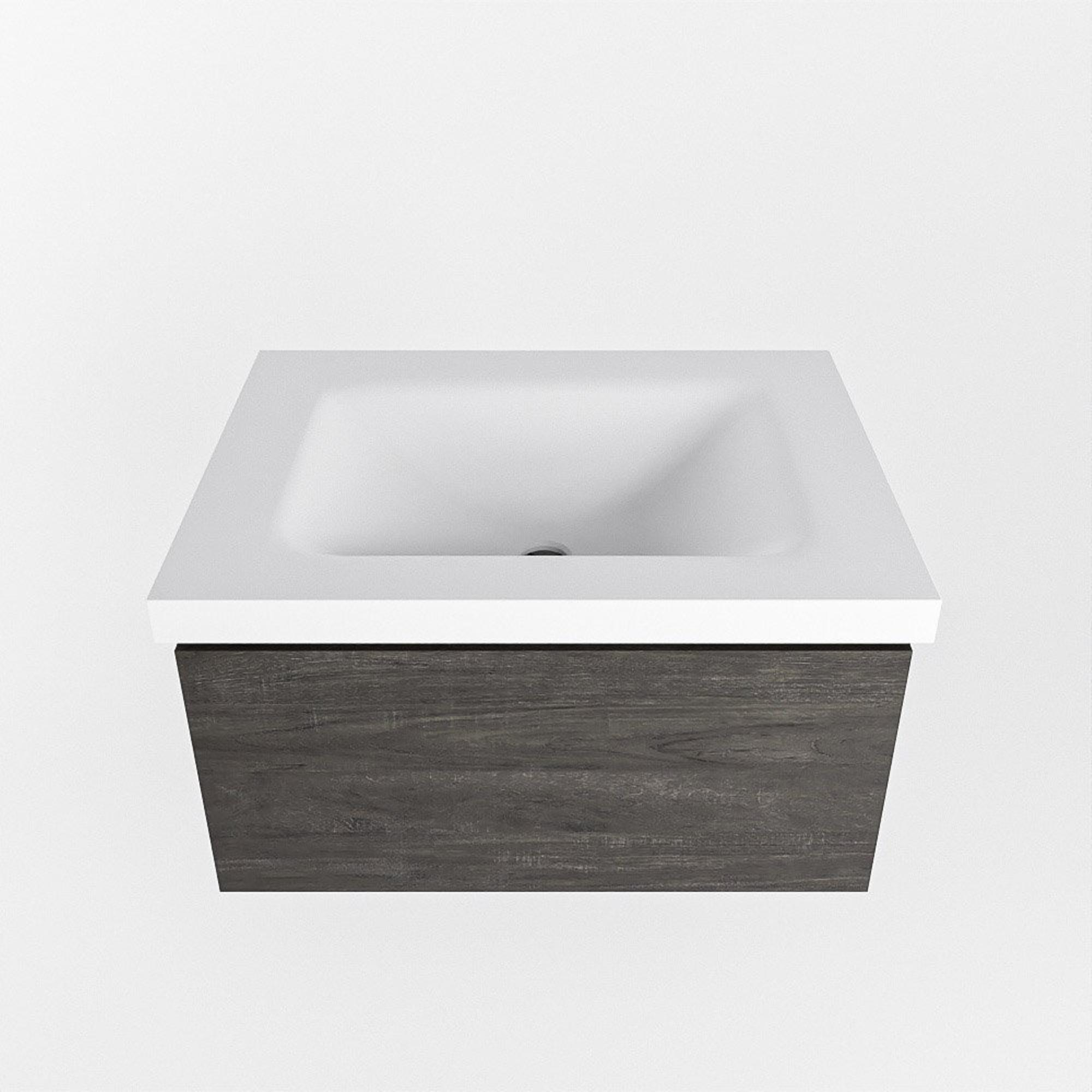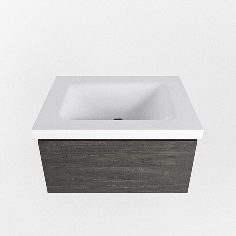 Mondiaz BUKLA Ensemble de meuble - 60x45x34cm - 1 trou de robinet - lavabo au centre - solid surface - Talc - sans poignée - 1 tiroir - Mélamine - Marron foncé