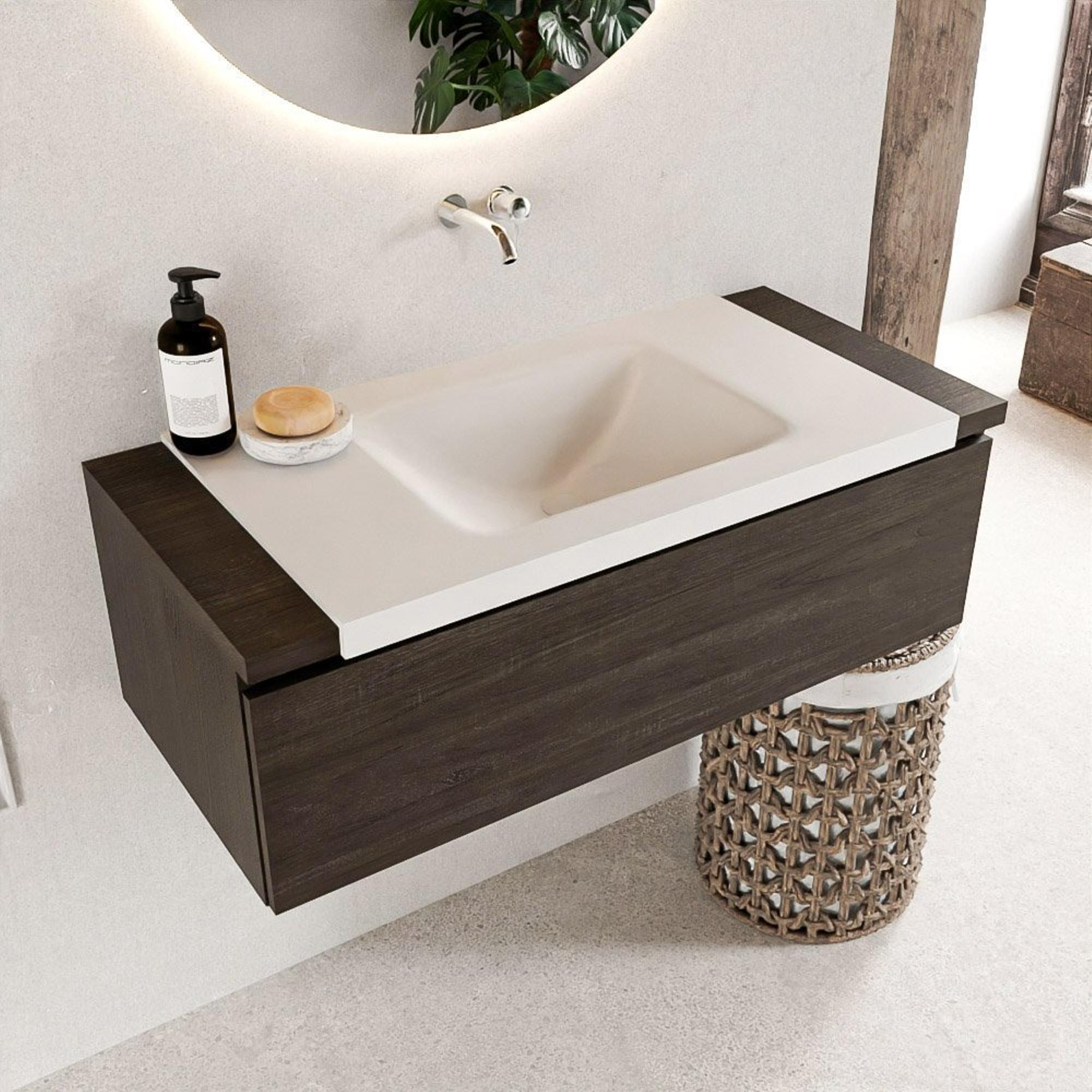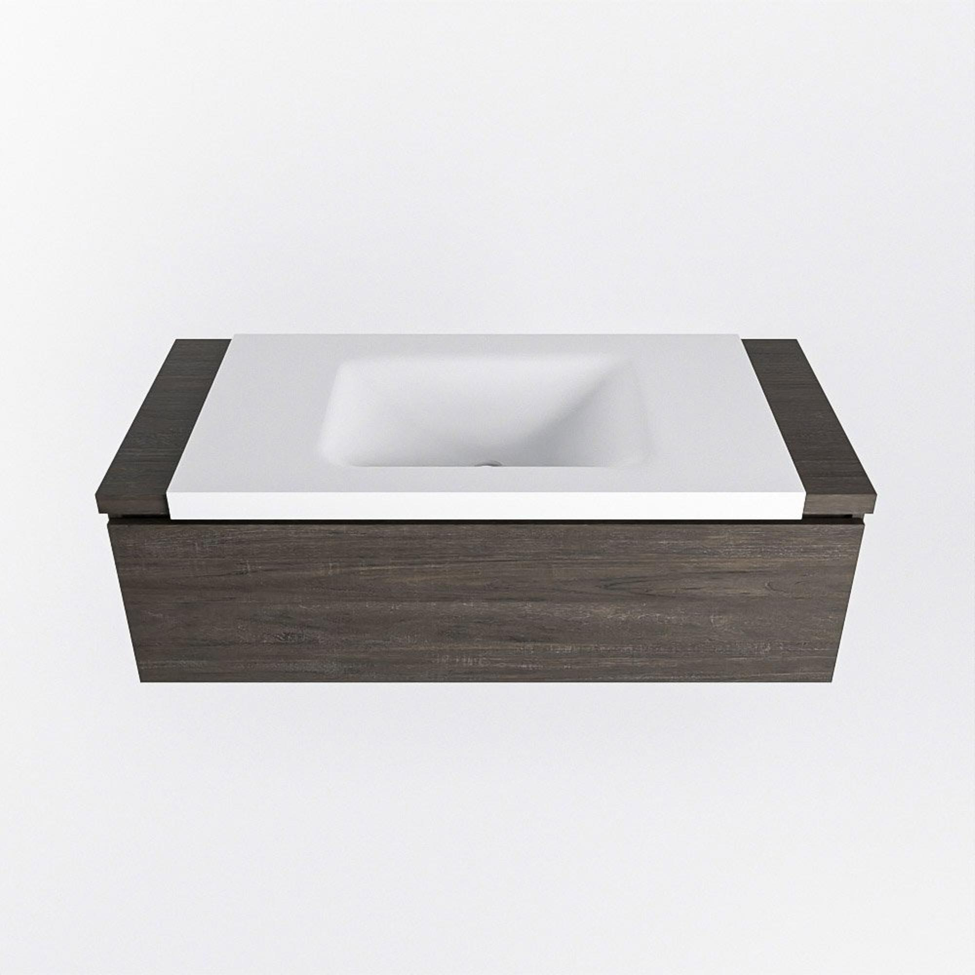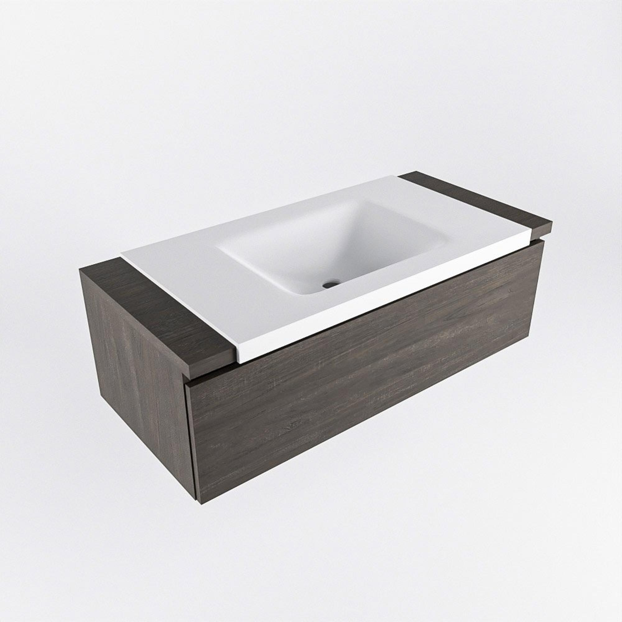 Mondiaz BUKLA Ensemble de meuble - 100x45x34cm - 0 trous de robinet - lavabo centré - solid surface - Talc - sans poignée - 1 tiroir - Mélamine - Marron foncé