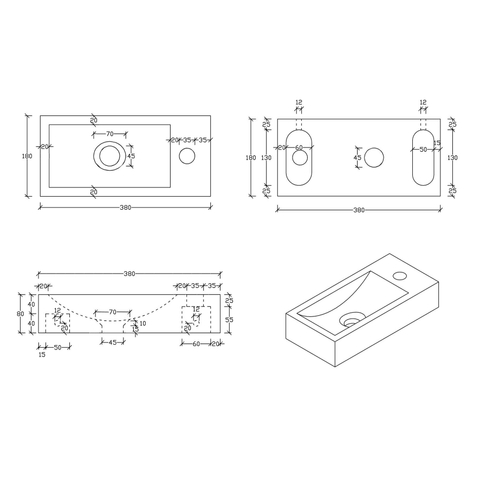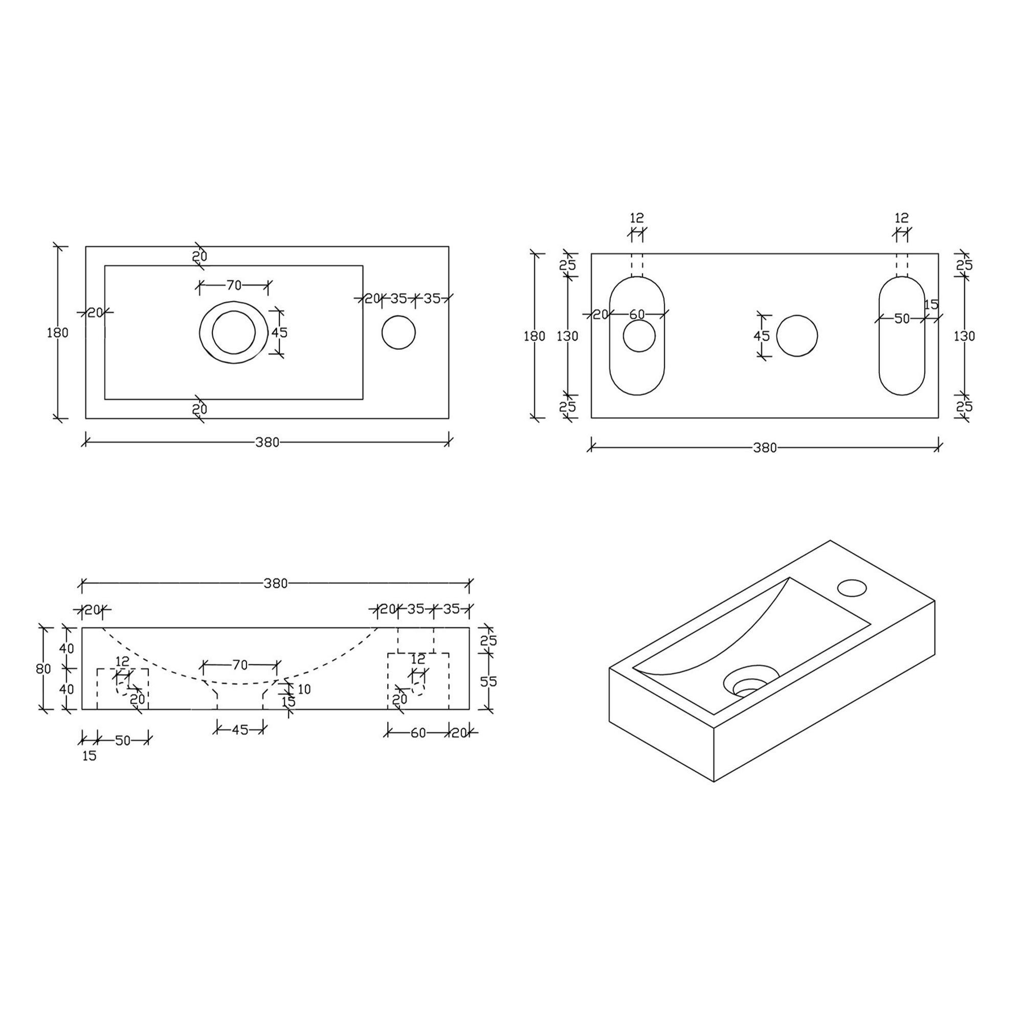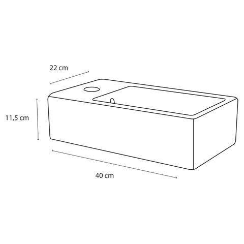 Grâce au trou de robinet situé sur la droite, ce lave-mains est particulièrement indiqué lorsque la porte ou un mur se trouve à gauche du petit lavabo. Vous risquez ainsi moins de heurter le robinet et bénéficiez de plus de liberté de mouvement en entrant. Cela rend l’agencement logique et confortable à l’usage quotidien. Le design plat et rectiligne offre en outre un peu d’espace à côté du robinet pour un distributeur de savon ou un petit accessoire, afin que vos toilettes aient toujours un aspect soigné. Combiné avec un petit robinet d’eau froide et une bonde de vidage élégante, vous créez un ensemble complet et fonctionnel dont vous profiterez pendant de nombreuses années.Caractéristiques :