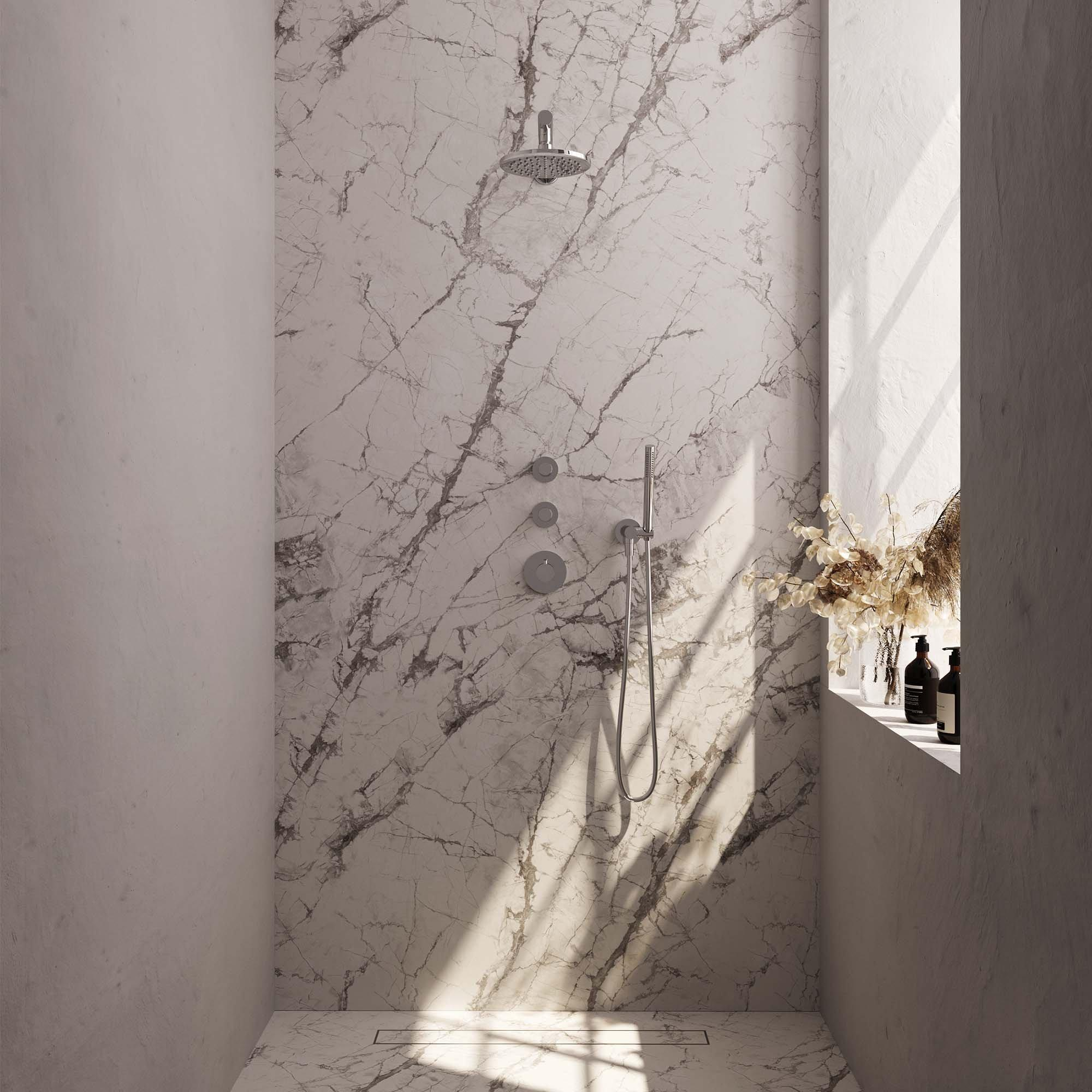 L'Ensemble de douche pluie Brauer Chrome Carving dégage luxe dans chaque salle de bain. La finition chrome offre un aspect brillant et élégant. La douche principale de 20cm assure une distribution uniforme de l'eau et une expérience de douche pluie agréable. Avec les 3 boutons sculptés, vous pouvez facilement ajuster la température et la pression de l'eau selon vos préférences. Cet ensemble ajoute une touche de luxe à votre expérience de douche quotidienne.