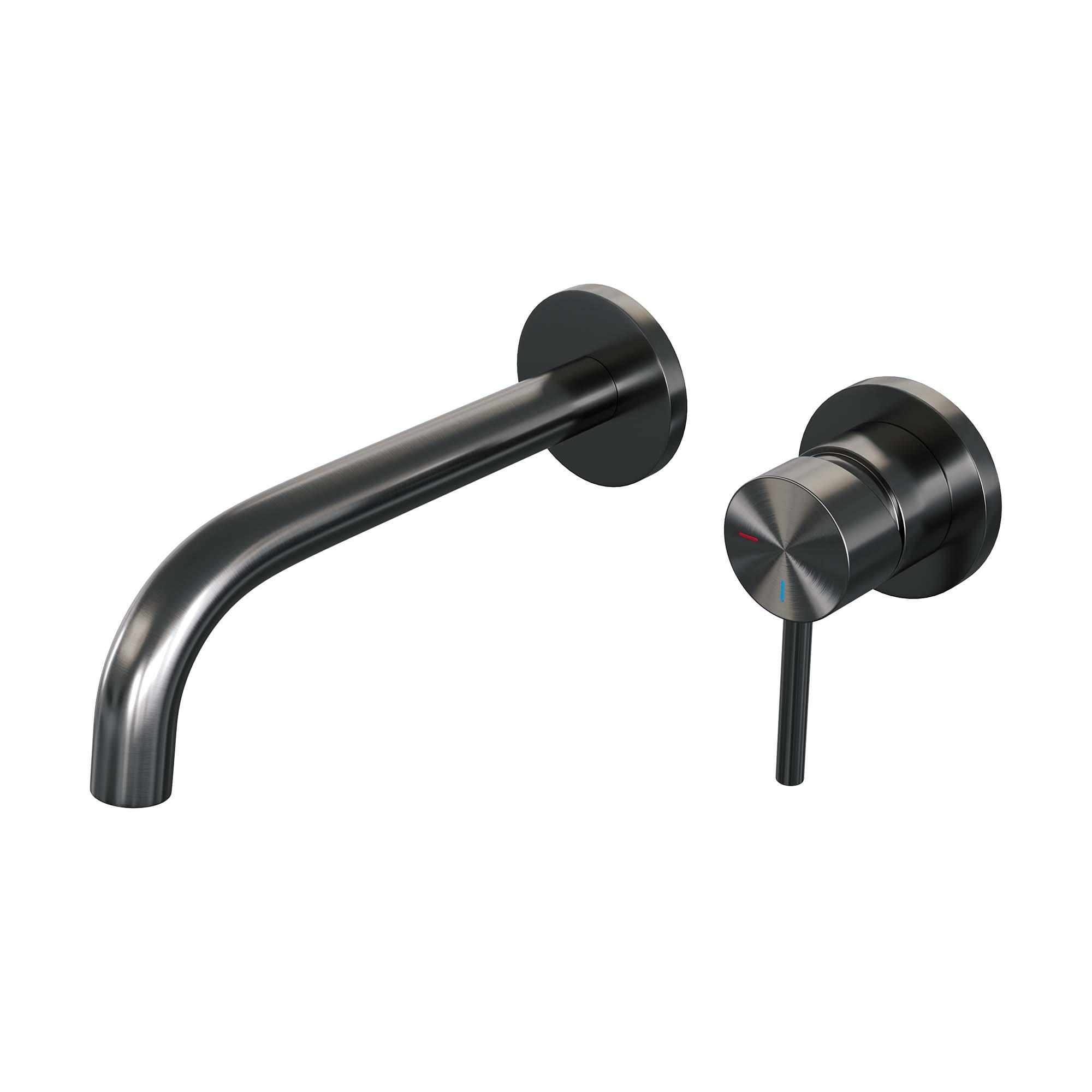 Brauer Gunmetal Edition Mitigeur de lavabo encastré - bec courbé à gauche - long levier étroit - modèle A 1 - PVD - gunmetal brossé
