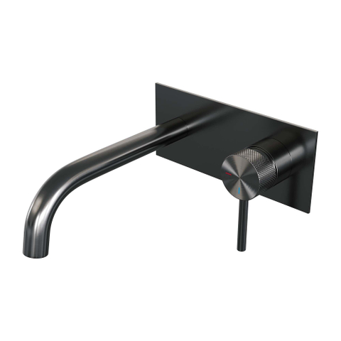 Brauer Gunmetal Carving Mitigeur de lavabo encastré - bec verseur courbé à gauche - commande longue étroite carving - plaque de recouvrement - modèle A 1 - PVD - gunmetal brossé