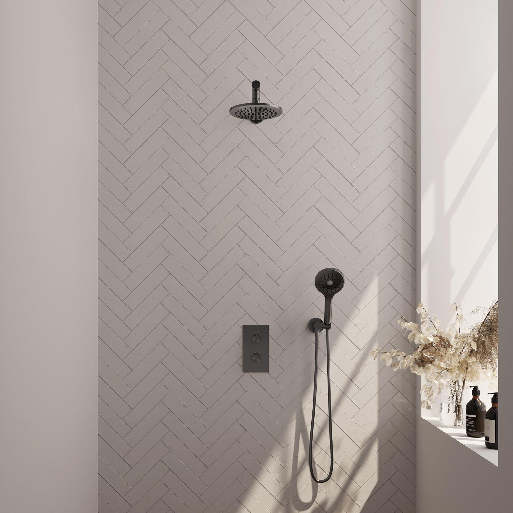Moderne L'ensemble de douche à pluie encastré Brauer Gunmetal Carving respire la modernité dans chaque détail. Des lignes épurées de la douche principale au bouton carving contemporain, chaque élément de cet ensemble de douche est conçu avec une esthétique moderne à l'esprit. La finition gunmetal brossé ajoute une touche de luxe et s'harmonise parfaitement avec les styles de salle de bain modernes. Avec son apparence minimaliste et pourtant raffinée, cet ensemble de douche est un point focal dans chaque salle de bain.