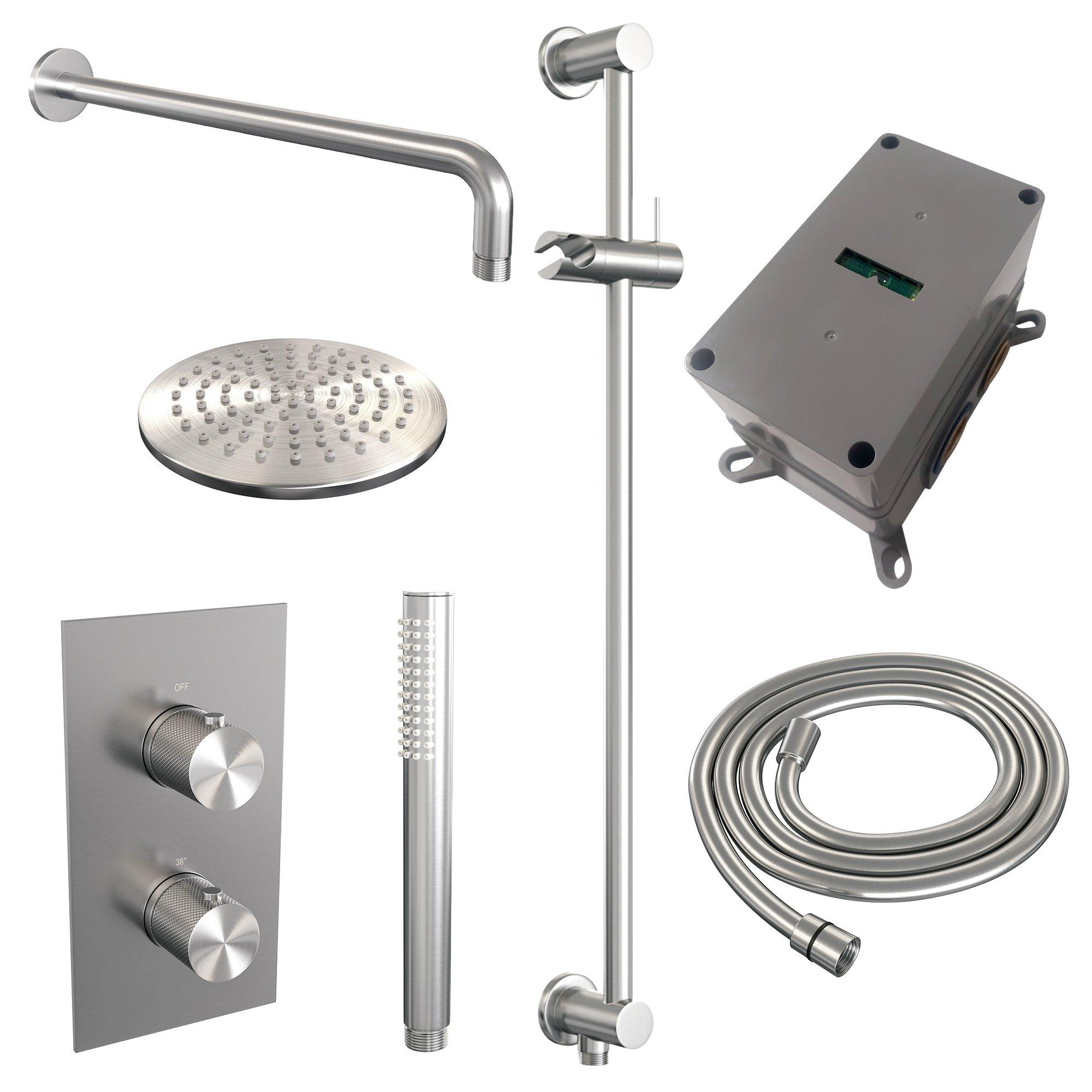 Brauer Brushed Carving Ensemble de douche pluie encastré - douche principale 20cm - bouton Carving - douchette à main barre 1 fonction - glijstang - PVD - inox brossé