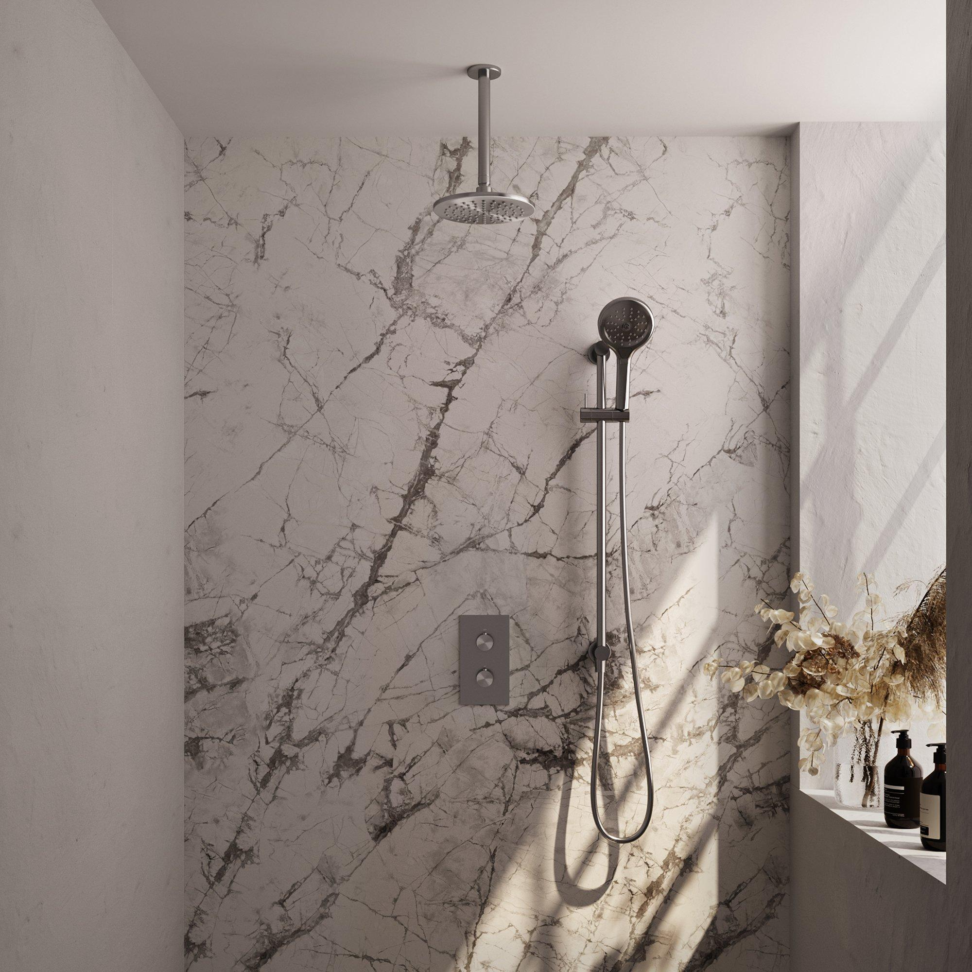 Diamètre pommeau : 20 cm -30cm Bras plafond - Douchette 3 jet(s) Rond - Gunmetal brossé (anthracite) - Bouton Carving (€ 1.269,30 )