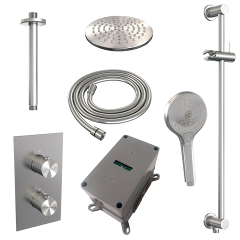 Diamètre pommeau : 20 cm -30cm Bras plafond - douchette 3 jet(s) Rond - Inox brossé PVD - Bouton Carving (€ 1.269,30 )