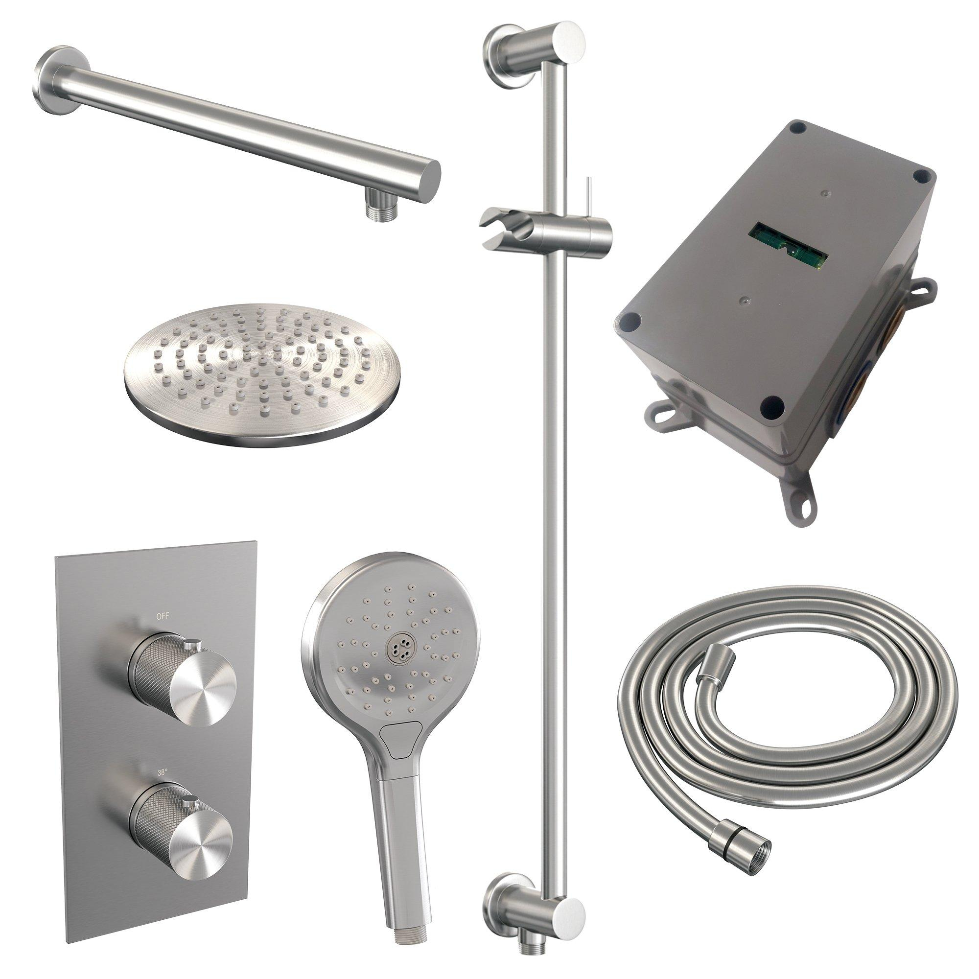 Brauer Douche pluie encastrable brossé - douche principale 20cm - bouton carving - douchette ronde 3 positions - glissière - PVD - inox brossé SW716124