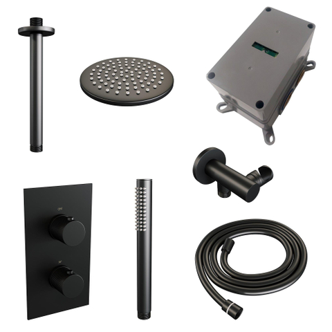 Ensemble de douche pluie encastré Brauer Black Carving - douche principale 20 cm - bras plafond 20 cm - 2 fonctions - incluant la partie encastrable - douchette à main 1 fonction - noir mat