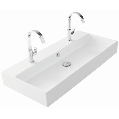 Thebalux lavabo Quadro 100cm céramique 1x cuve 2x trou de robinet