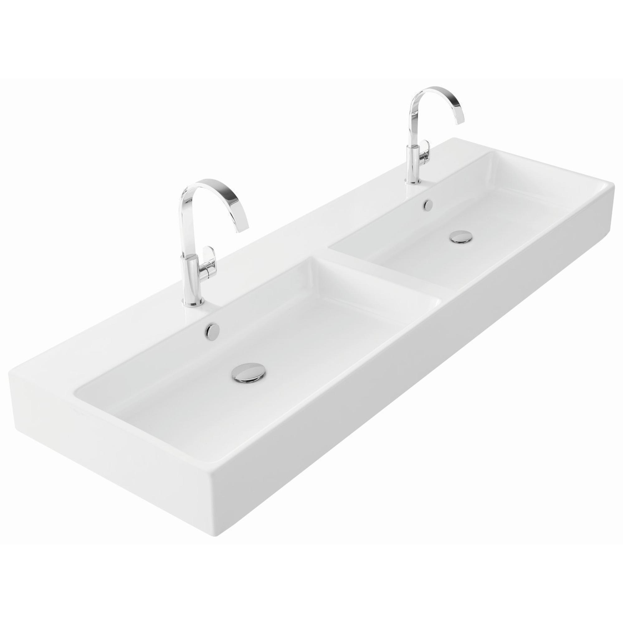 Thebalux lavabo Quadro 140cm céramique 2x cuve 2x trou de robinet