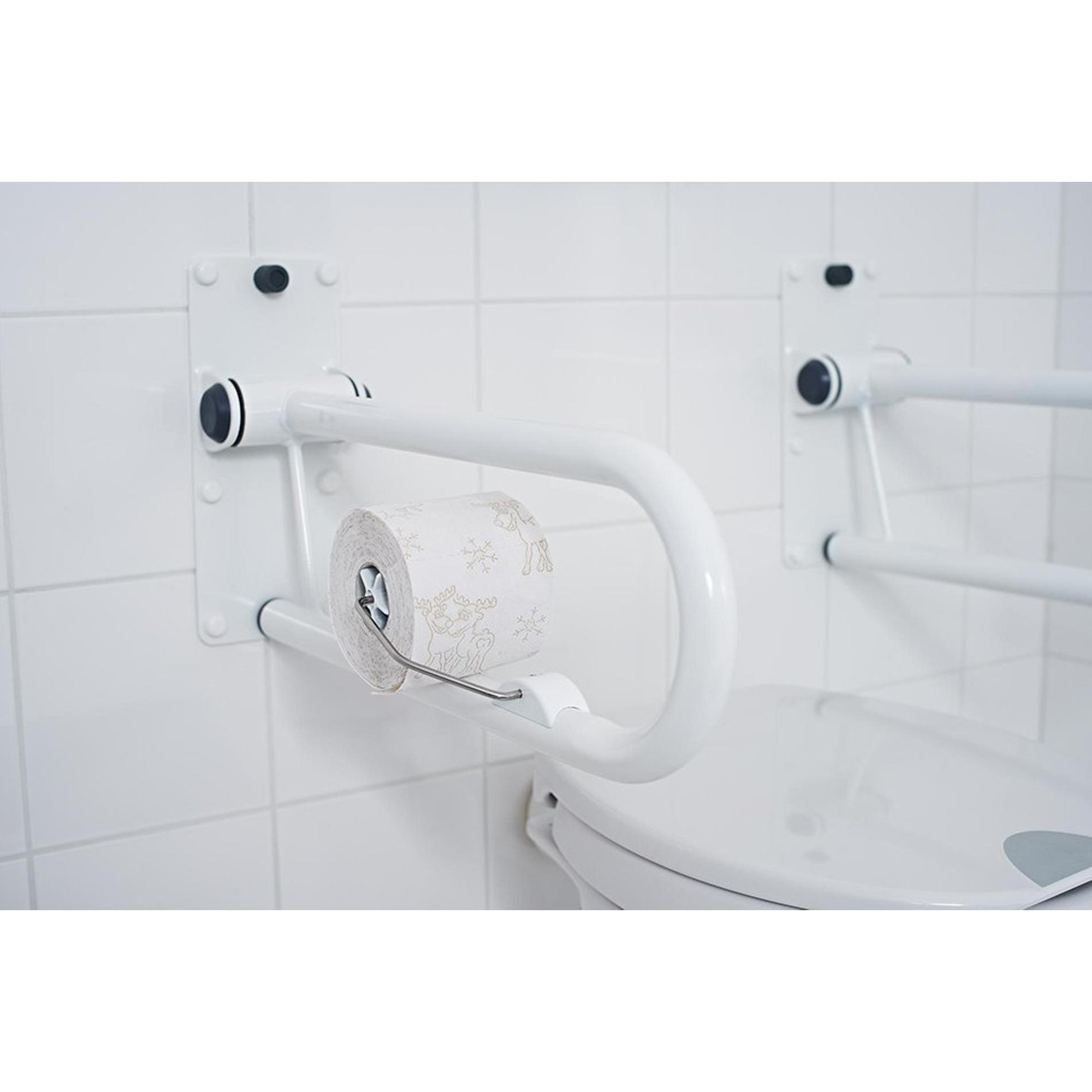 Parce que ce support est spécialement conçu pour être utilisé en combinaison avec des barres relevables, la fixation s'adapte parfaitement à ce type de soutien. Le montage sur la barre est simple et solide, de sorte que vous êtes certain que le support restera bien en place lors d'une utilisation quotidienne. C'est particulièrement important dans des toilettes où la sécurité et la stabilité sont primordiales. Comme vous n'avez pas besoin d'effectuer de travaux de perçage compliqués dans le mur, il s'agit également d'une solution pratique si vous préférez ne pas percer dans la paroi ou s'il s'agit d'une situation existante que vous souhaitez améliorer intelligemment avec une fonctionnalité supplémentaire.