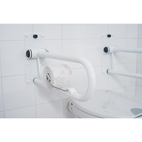 Ce porte-rouleau de papier toilette est conçu pour vous offrir un maximum de confort lors de l'utilisation des toilettes. Comme il est fixé directement sur la barre relevable, le rouleau de papier toilette se trouve exactement là où vous l'attendez : à une distance de portée confortable. Cela réduit les mouvements de rotation inutiles et rend les toilettes adaptées à différents utilisateurs, des personnes âgées aux personnes en rééducation temporaire. Le support convient pour un rouleau de papier toilette standard, ce qui permet un remplacement rapide et facile. Avec un petit ajout, vous créez ainsi une configuration de toilettes beaucoup plus ergonomique qui rend la vie quotidienne un peu plus agréable.