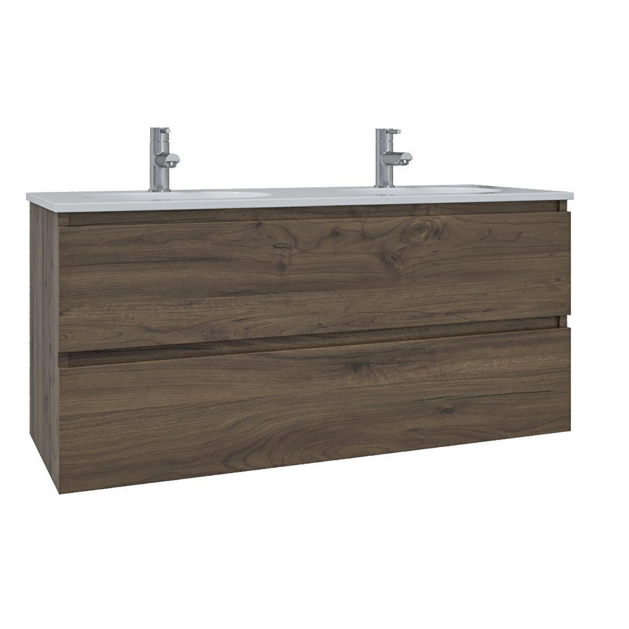 Saniclass Chaci Ensemble meuble de salle de bains - 120x46x57cm - lavabo en céramique blanc - 2 vasques ovales - 2 trous de robinet - 2 tiroirs - Noyer (bois)