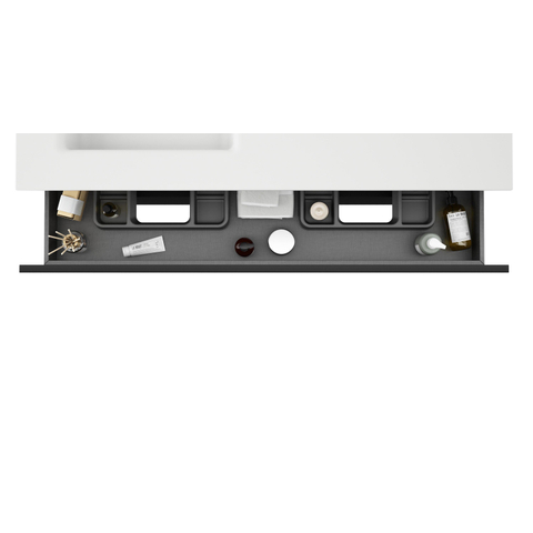 L'ensemble meuble de salle de bains Saniclass Chaci dégage style et élégance. La combinaison des vasques ovales blanches en céramique et de la finition noir mat offre un aspect contemporain qui s'intègre parfaitement dans un intérieur moderne. Les détails subtils, comme les trous de robinet et les tiroirs, n'ajoutent pas seulement de la fonctionnalité, mais contribuent également à l'esthétique globale du meuble.