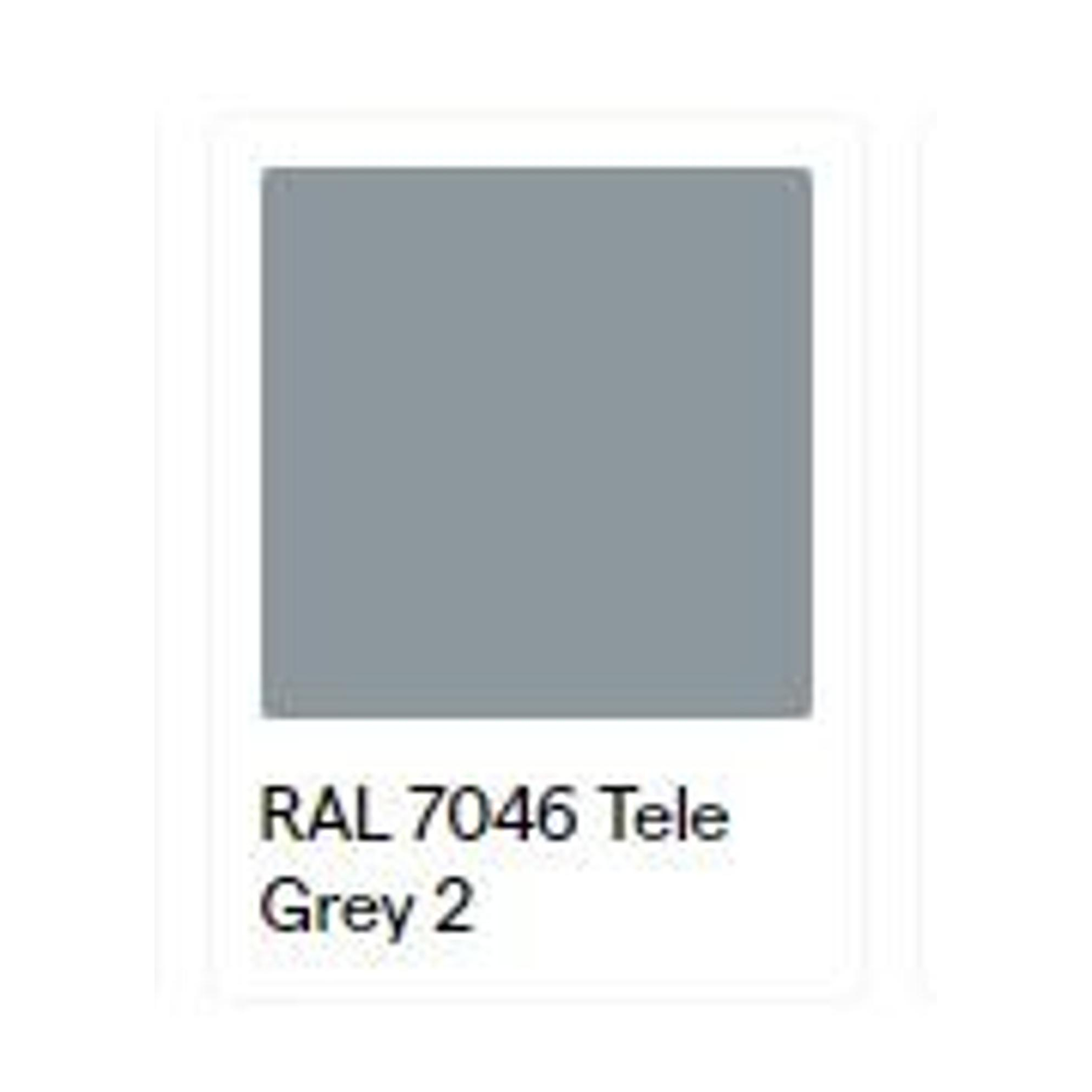 - Finition tele grey (comparable au RAL 7046) pour une teinte de gris élégante et intemporelle qui se marie bien avec l’effet béton et le bois.