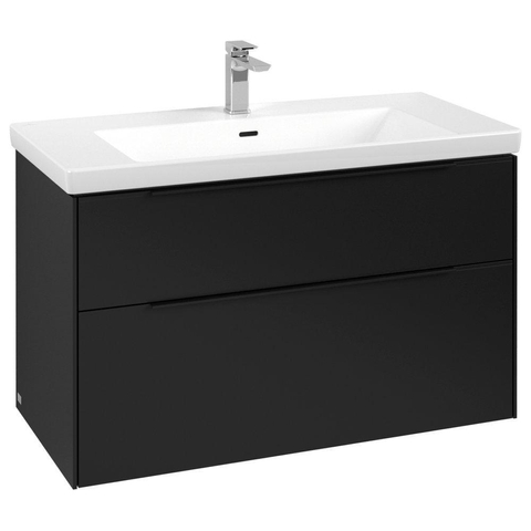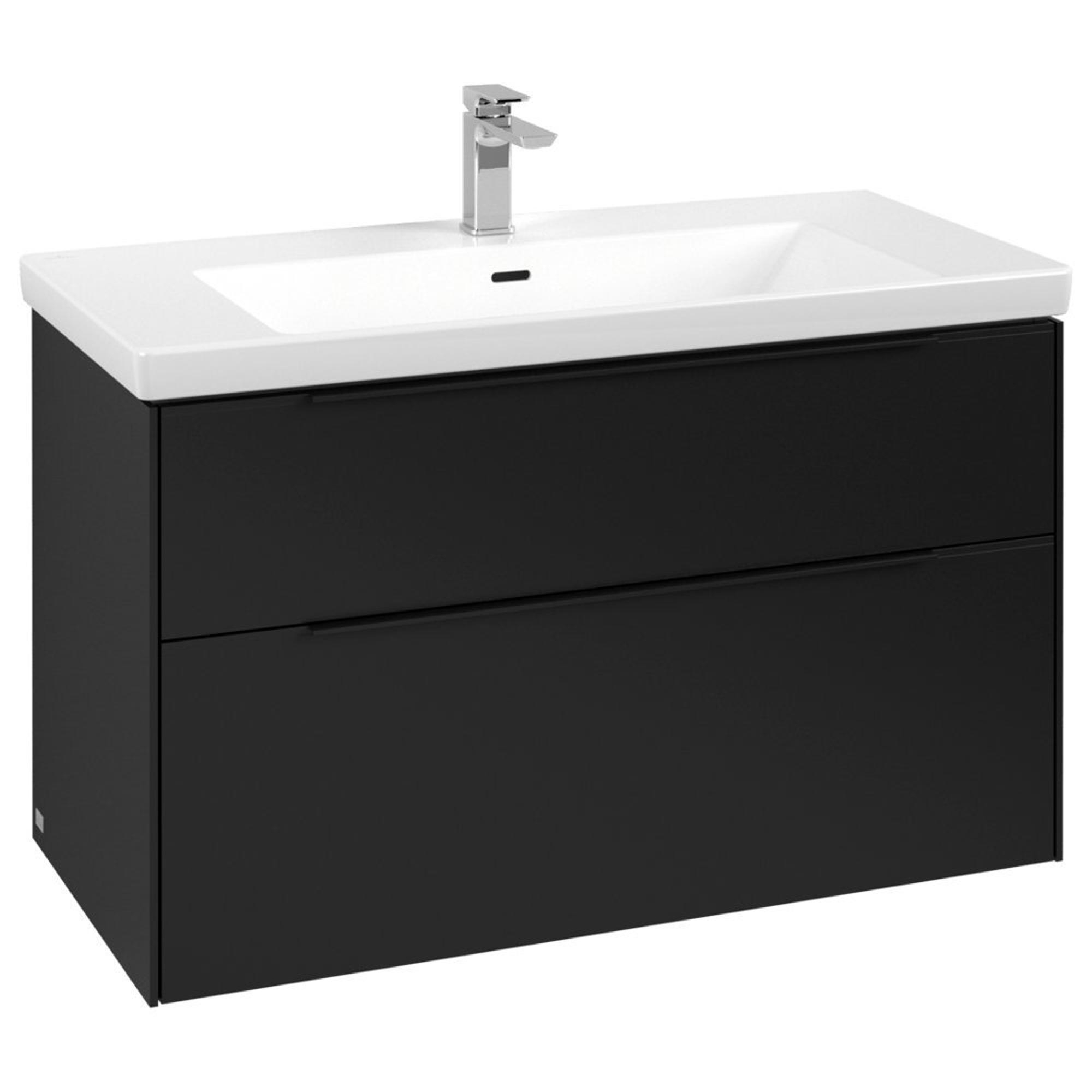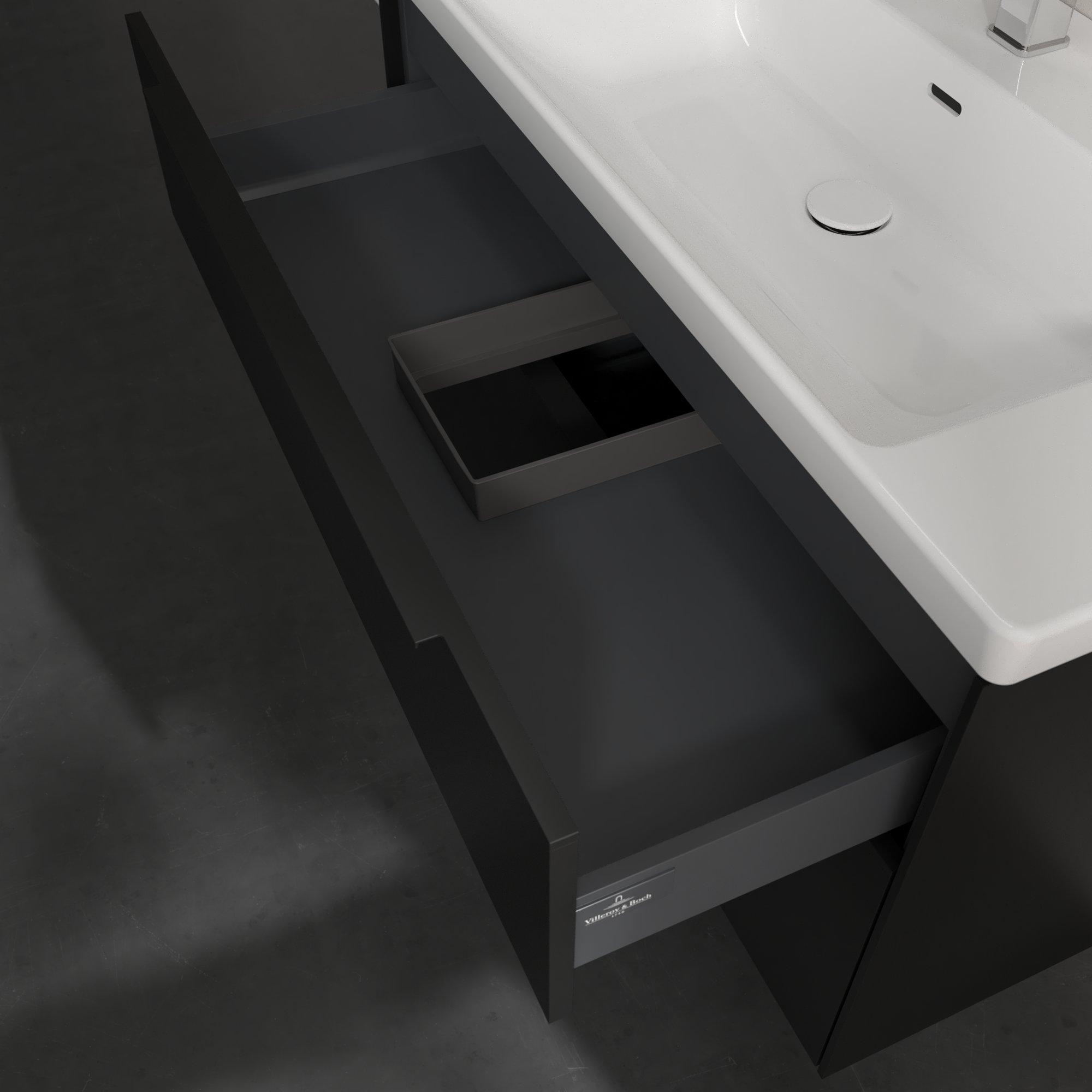 Villeroy & Boch Subway 3.0 meuble sous-lavabo - 100x55x45cm - avec poignée Volcano Black 2 tiroirs à fermeture douce 1 découpe pour siphon panneau de particules volcano black