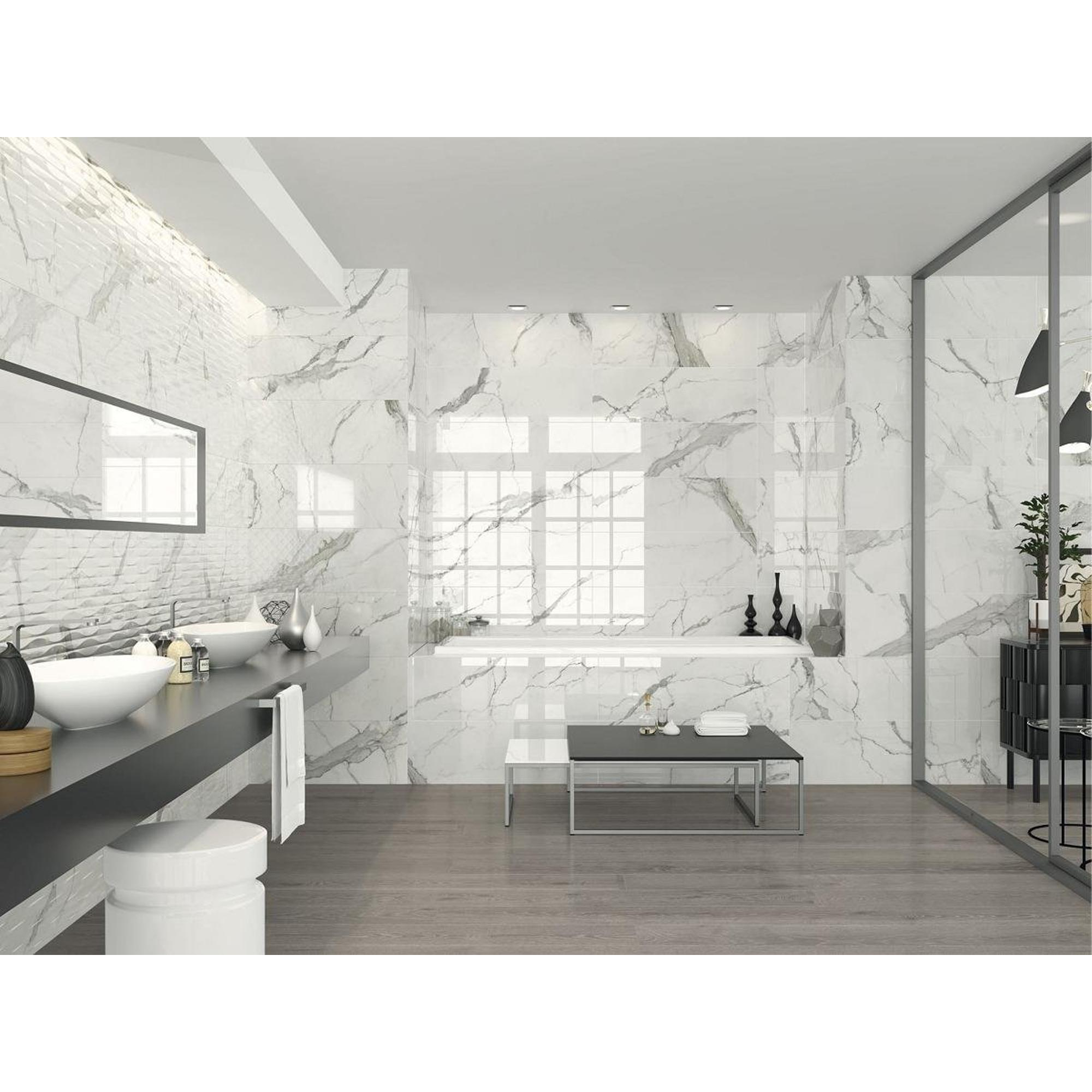 SAMPLE Cifre Cerámica Carrelage mural Statuario brillant Rectifié Aspect marbre Brillant Blanc/noir
