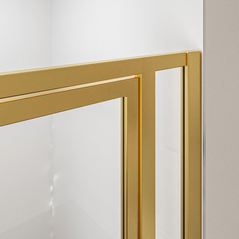 Aqua Vista Triple Porte pivotante avec partie fixe - 120x200 cm - verre transparent - laiton brossé (or)