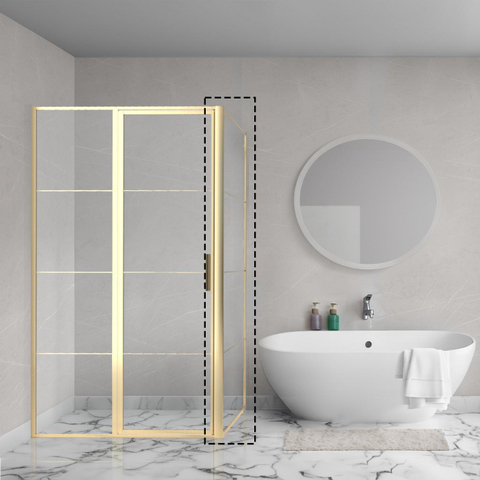 Aqua Vista Triple Paroi latérale - 90x200 cm - incl. barre murale - verre transparent - laiton brossé (or)