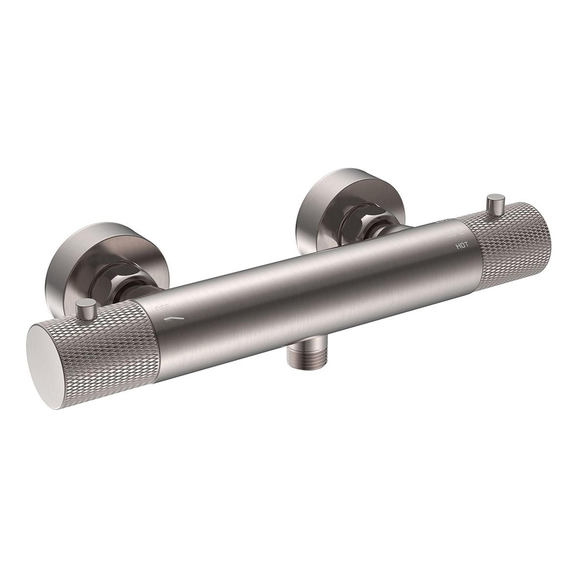 Wiesbaden Ribbd Mitigeur thermostatique de douche entraxe 15 cm acier brossé PVD