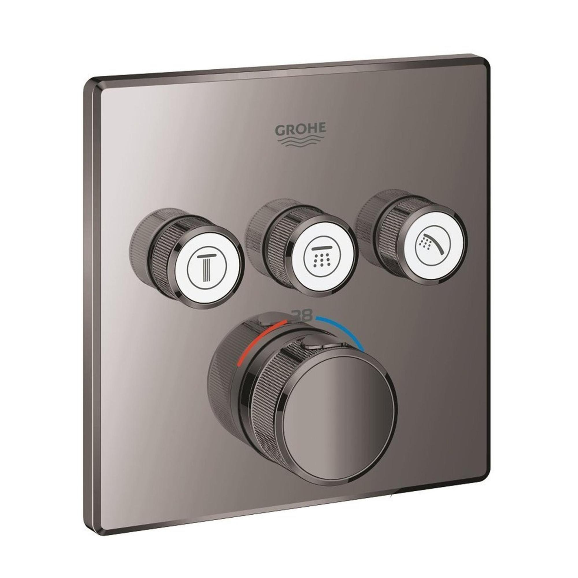 GROHE Rainshower Smartactive Ensemble de douche de tête Apparente - douche de tête carrée 31cm - douchette carrée - bras de plafond - boîtier d'encastrement - hard graphite