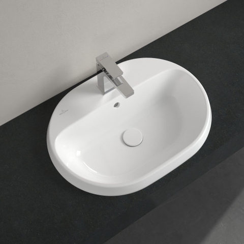 Villeroy & Boch Architectura lavabo encastré - 60x45x17cm - Ovale 1 trou de robinet avec trop-plein Blanc Alpin brillant Céramique