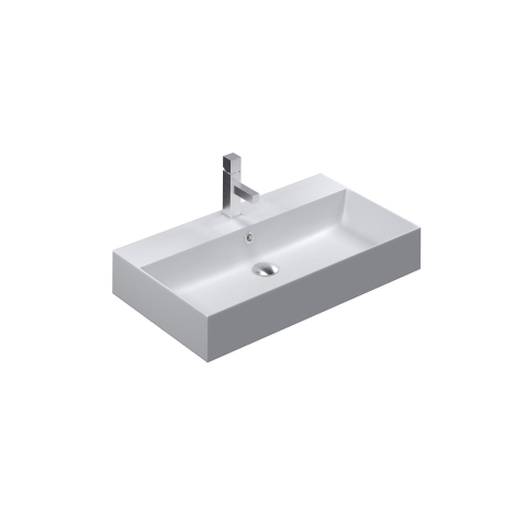 Vous recherchez un lavabo épuré et moderne qui s’intègre facilement dans une salle de bains contemporaine, mais qui offre également suffisamment de confort dans un espace compact ? Alors ce lavabo à poser rectangulaire avec une grande cuve et un trou de robinet est un choix tout à fait logique. Grâce à sa largeur généreuse de 81 cm, vous disposez de suffisamment de place pour vous laver les mains, poser vos produits de soin quotidiens et effectuer sereinement votre routine du matin et du soir. La profondeur relativement limitée de 46 cm évite que l’ensemble paraisse massif et permet à ce modèle de trouver parfaitement sa place dans les salles de bains plus étroites ou sur un meuble-lavabo aux lignes épurées. Avec ses lignes modernes et cubistes, ce modèle s’harmonise à merveille avec les intérieurs minimalistes, les robinets design et les meubles sans poignées. Vous créez ainsi une salle de bains qui n’est pas seulement agréable à regarder, mais surtout pratique et confortable à utiliser au quotidien.