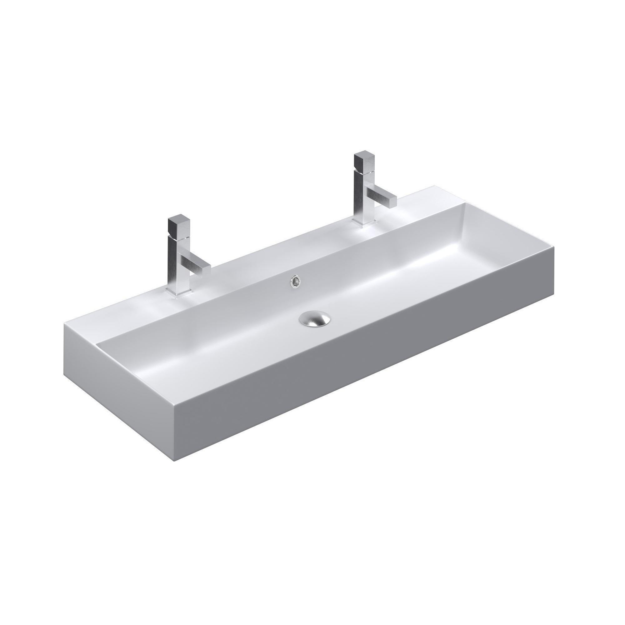 Vous cherchez un lavabo épuré et moderne, à la fois pratique et élégant à l’usage quotidien, par exemple dans une grande salle de bains ou une généreuse salle de bains familiale ? Alors il s’agit d’un choix judicieux. Grâce à sa grande largeur, il offre beaucoup d’espace autour de la cuve pour les produits de soin, tandis que le design sobre et rectiligne assure une apparence ordonnée. Les doubles trous de robinet permettent à deux personnes d’utiliser le lavabo en même temps, idéal pendant les heures de pointe du matin. Grâce au jeu de lignes minimaliste, cette solution se combine facilement avec différents meubles de salle de bains et styles, du moderne au intemporel. Vous créez ainsi aisément une configuration de lavabo fonctionnelle qui non seulement est esthétique, mais fonctionne également de manière confortable et fiable pendant de nombreuses années.