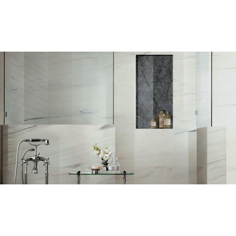 L'apparence épurée et moderne du carrelage Atlas Concorde Marvel Dream le rend parfait pour les salles de bain contemporaines qui visent une esthétique minimaliste et raffinée. La finition rectifiée assure un look sans joint, tandis que la teinte claire Bianco Fantastico (Blanc) ajoute une apparence fraîche et intemporelle à chaque espace.