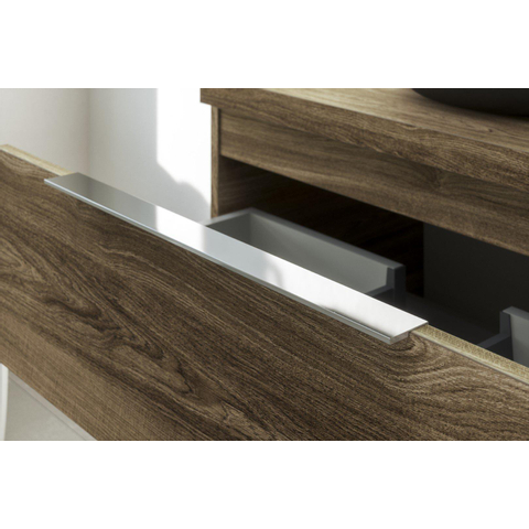 Ce meuble bas est constitué de MDF et de panneau de particules avec des coulisses de tiroir métalliques, une combinaison éprouvée pour les meubles de salle de bains. Les matériaux sont conçus pour bien résister à une utilisation quotidienne dans une pièce humide, à condition d’être montés et ventilés correctement. Le tiroir softclose se ferme silencieusement et de manière contrôlée, ce qui évite les tiroirs qui claquent et permet au meuble de rester beau plus longtemps. La poignée standard tient bien en main et permet d’ouvrir le tiroir d’un seul geste, même lorsque tes mains sont mouillées. Tu profites ainsi chaque jour du confort, de la qualité et de la facilité d’utilisation.