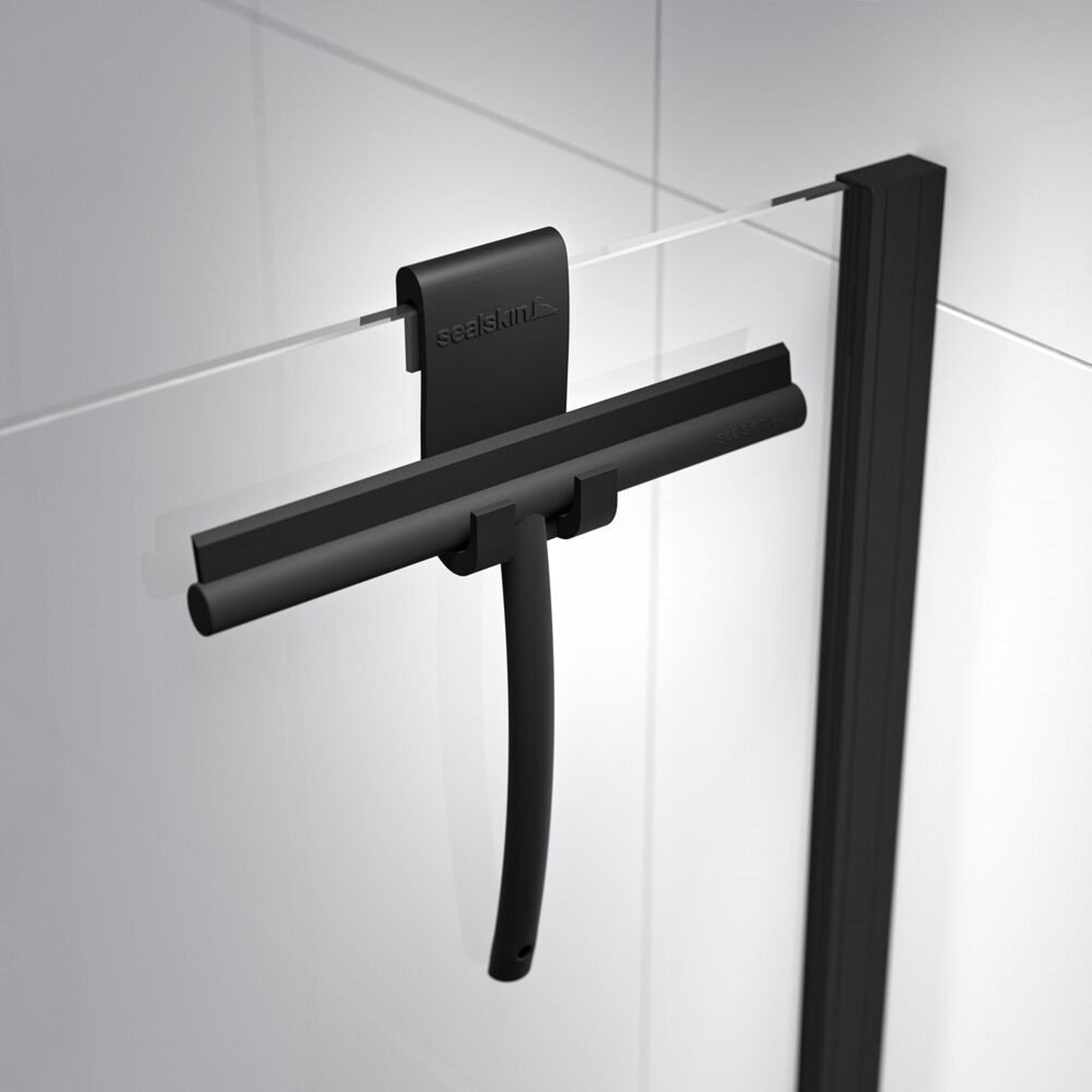 Sealskin Inc. Porte pivotante et paroi latérale 100x100x200cm avec panier de douche verre de sécurité clair 8mm avec traitement anticalcaire noir mat