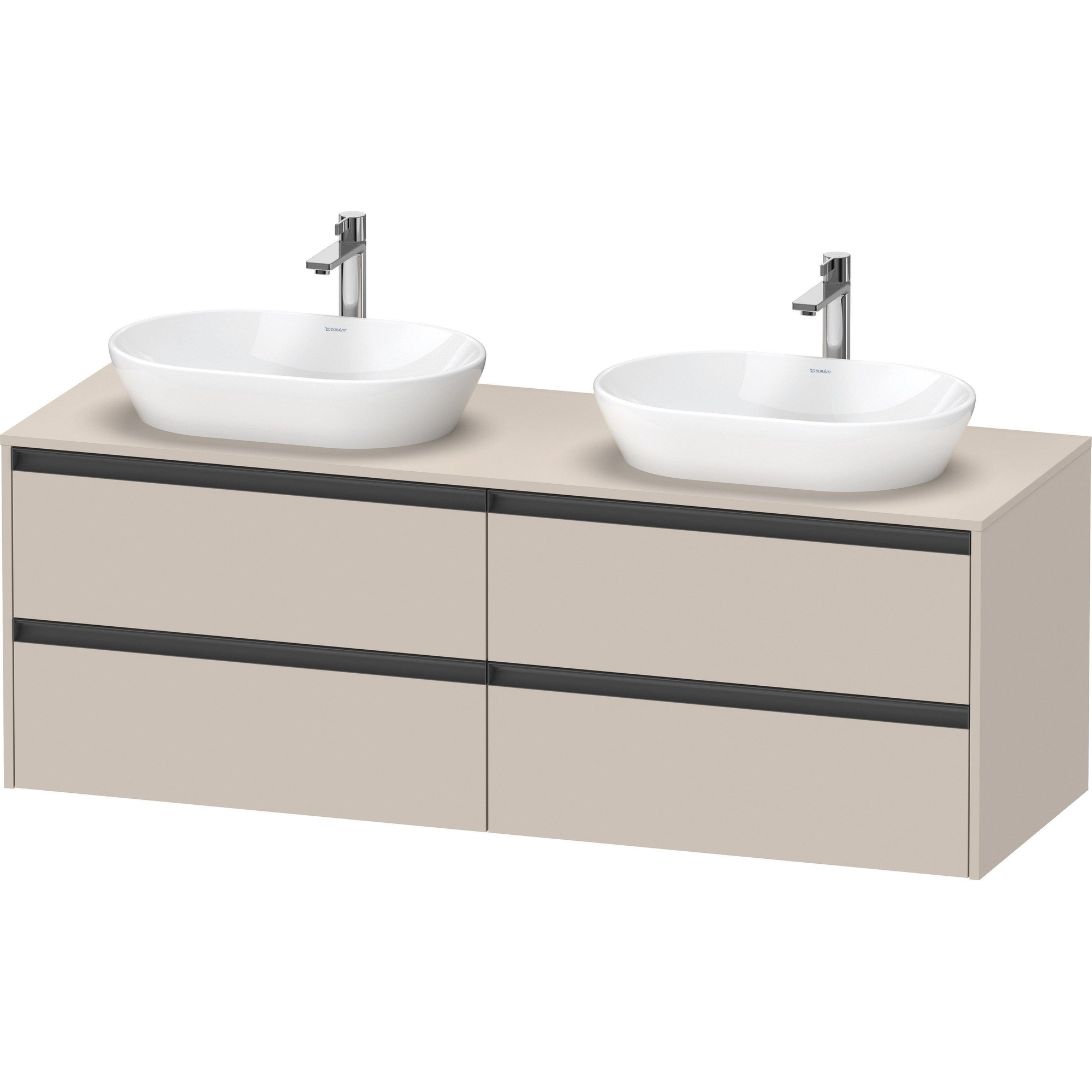 Duravit Ketho 2 meuble sous-lavabo y compris plan de console avec 4 tiroirs pour vasques doubles 160x55x56.8cm avec poignées anthracite taupe mat