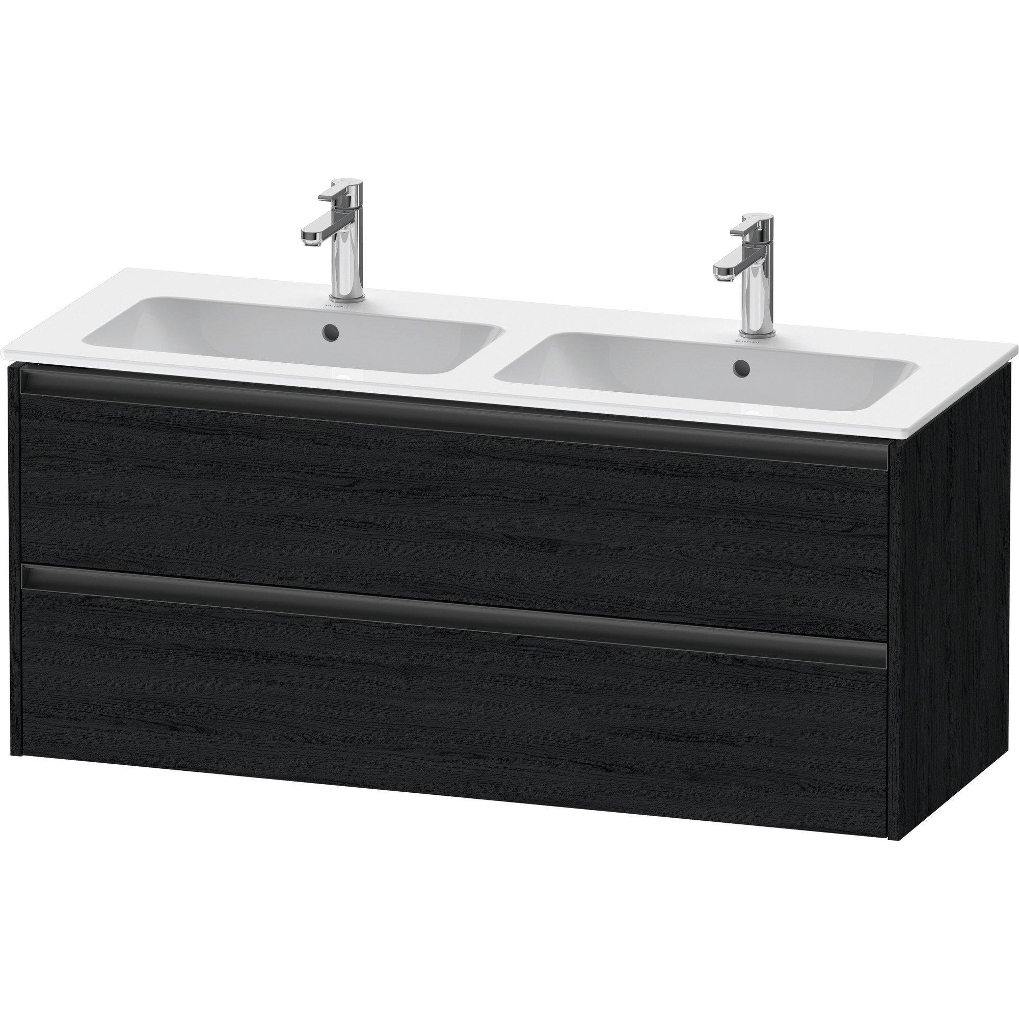 Duravit Ketho 2 meuble bas pour lavabo avec 2 tiroirs pour double vasque 128x48x55cm avec poignées chêne anthracite noir mat