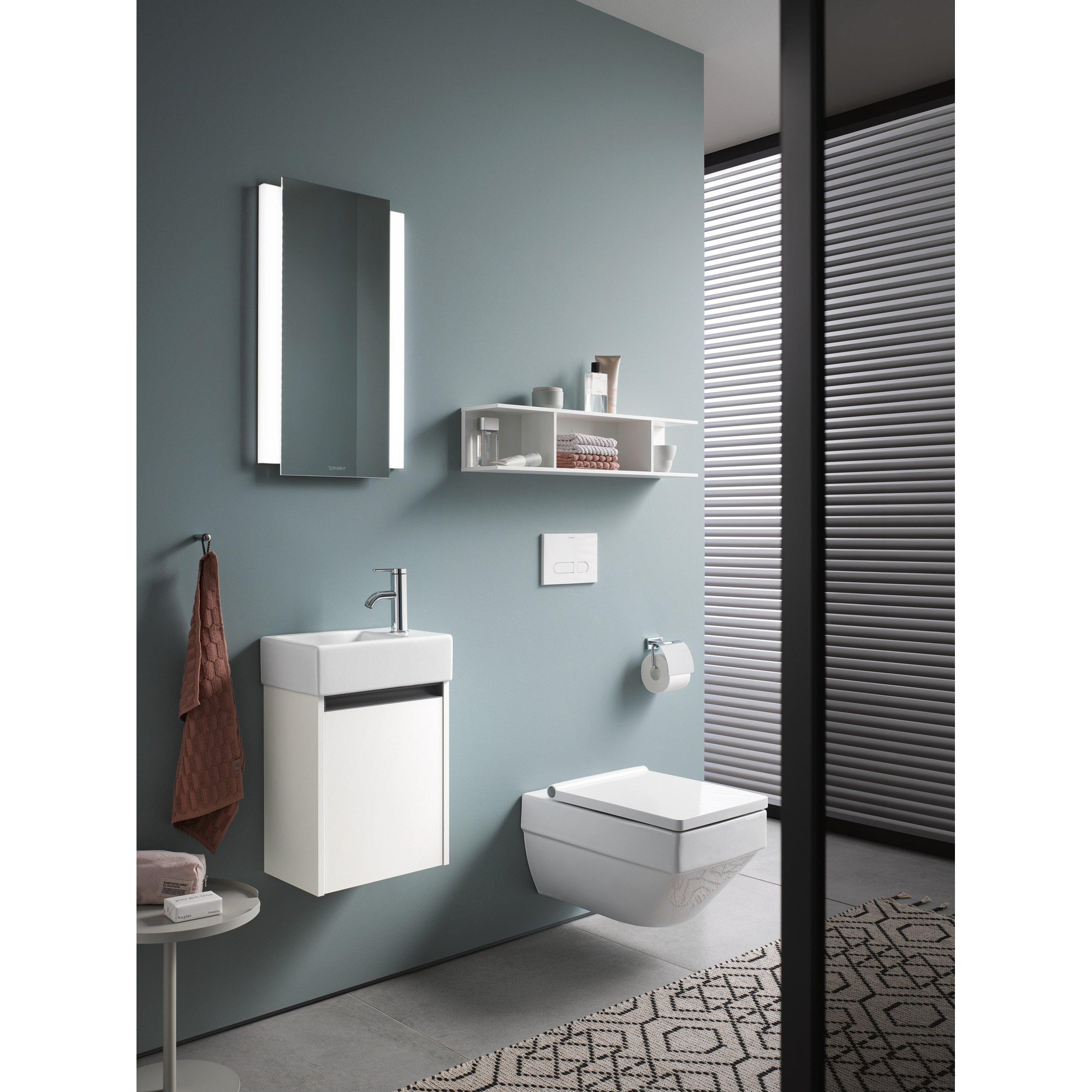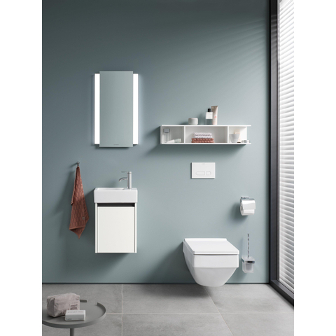 Avec une largeur de 36,4 cm et une profondeur de seulement 23,8 cm, ce meuble est spécialement conçu pour les petites salles de bains et toilettes, sans que vous deviez renoncer à l’espace de rangement. Derrière la porte battante à droite, vous rangez aisément les essentiels du quotidien, comme les produits d’entretien, le papier toilette ou les produits de soin. Comme l’armoire est fixée en suspension au mur, le sol reste libre ; cela donne non seulement une impression d’espace, mais rend également le nettoyage beaucoup plus facile. Combiné à un lavabo compact, il crée ainsi un espace de lavage pratique et ordonné, parfait pour un usage quotidien intensif par toute la famille ou au contraire dans une salle de bains pour invités.