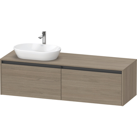 Duravit Ketho 2 meuble sous-lavabo avec plan de console avec 2 tiroirs pour vasque à poser à gauche 160x55x45.9cm avec poignées chêne anthracite terra mat