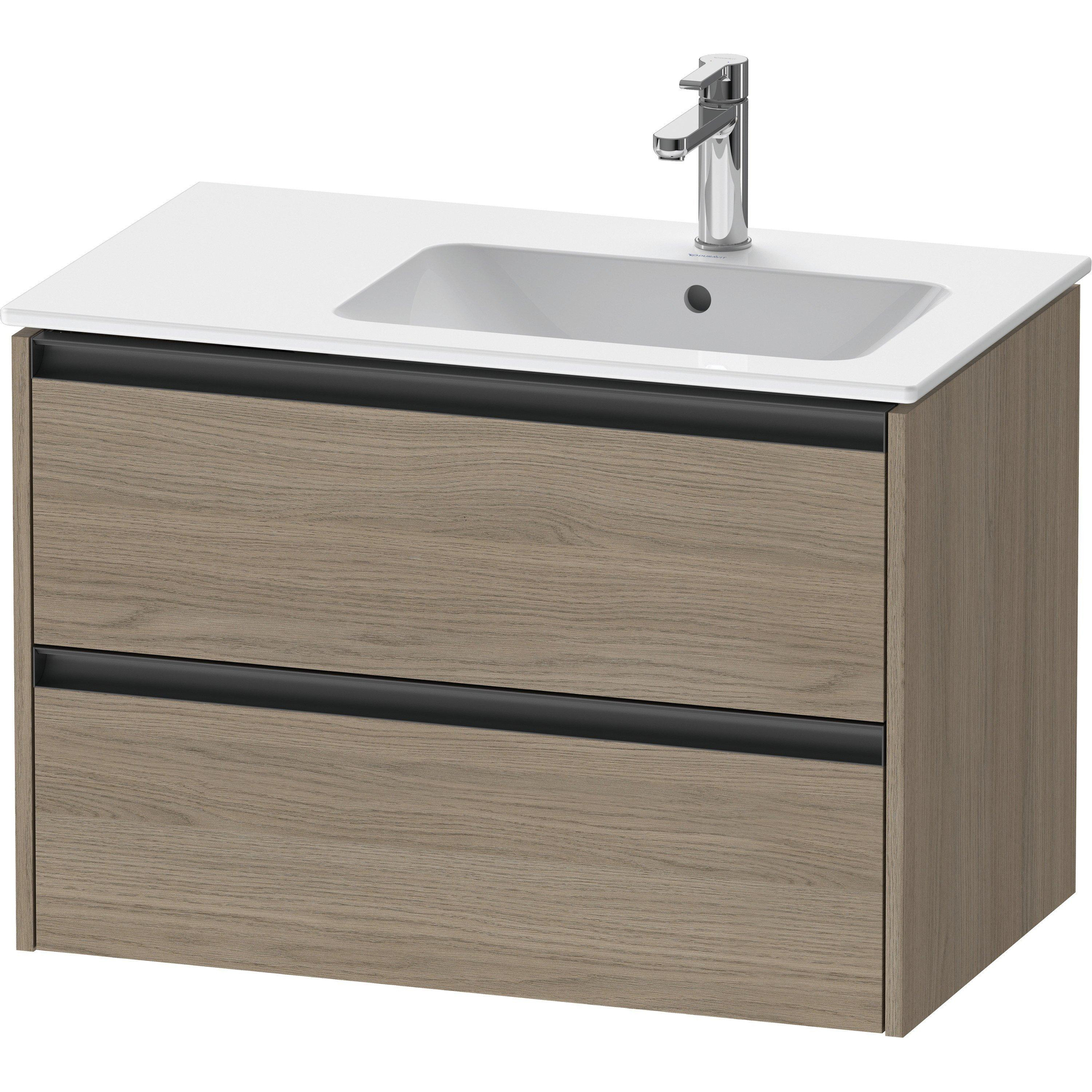Duravit Ketho 2 meuble sous-lavabo avec 2 tiroirs pour vasque à droite 81x48x54,9cm avec poignées chêne anthracite terra mat